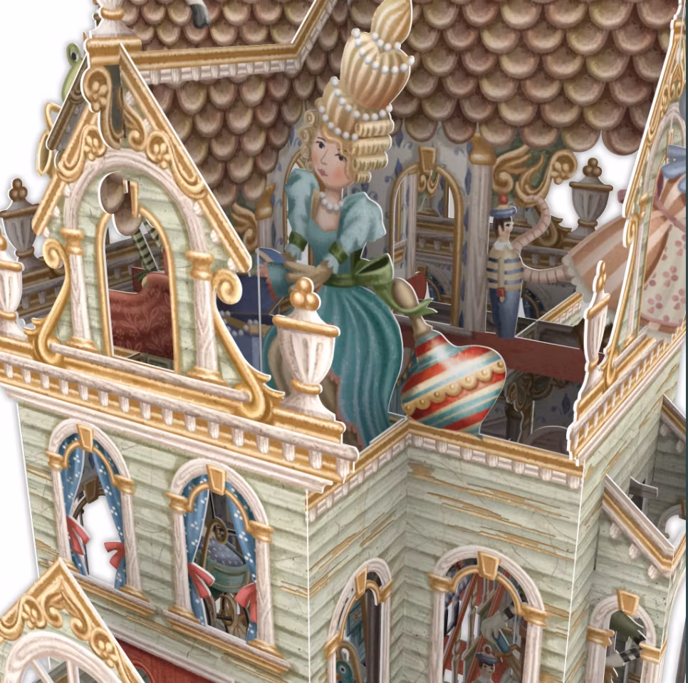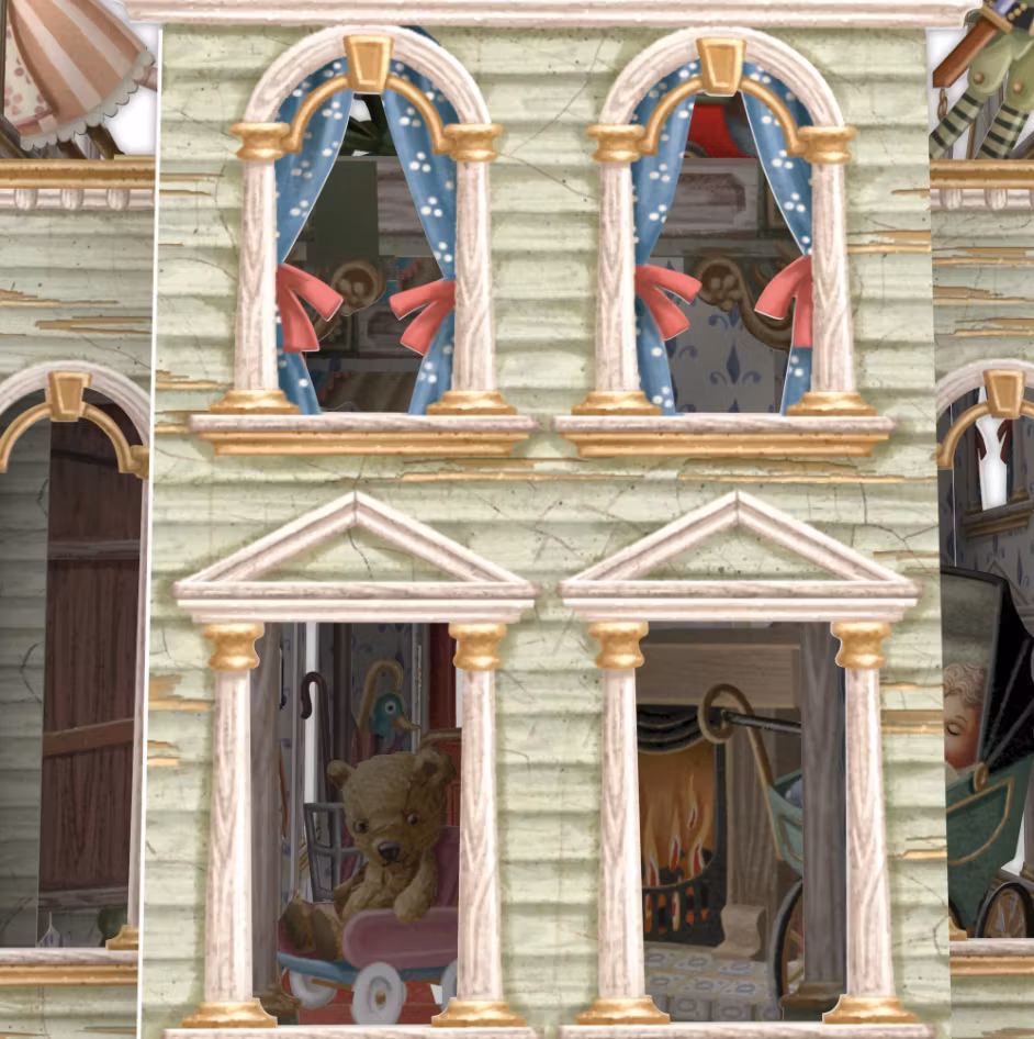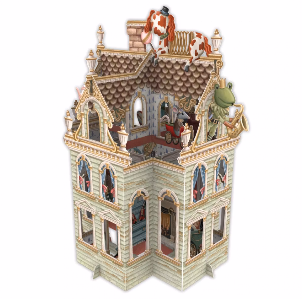 Här är motivet ett gammalt antikt dockhus. Vilka bor inne i det fina huset? Det ser du om du vänder och vrider lite på kortet.
