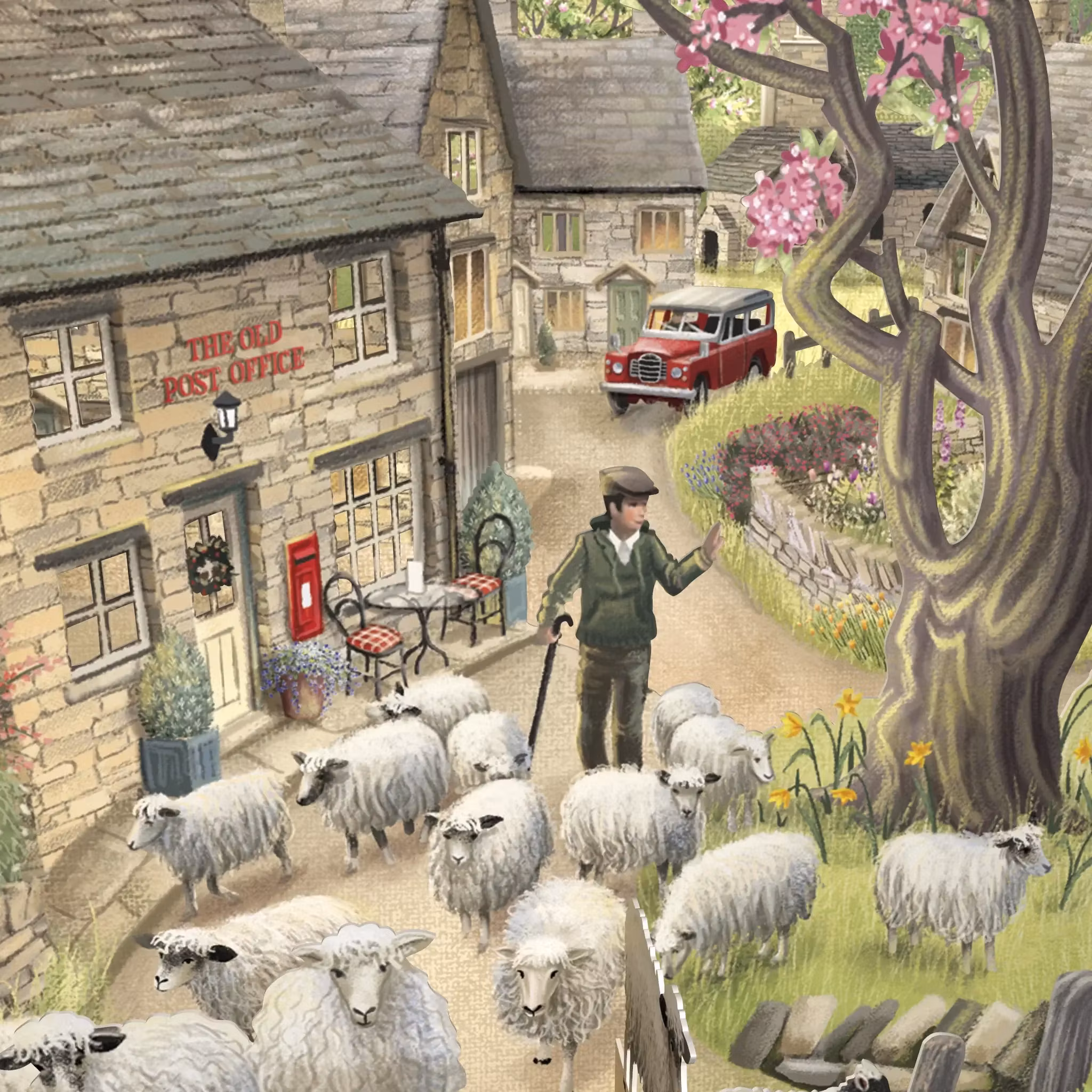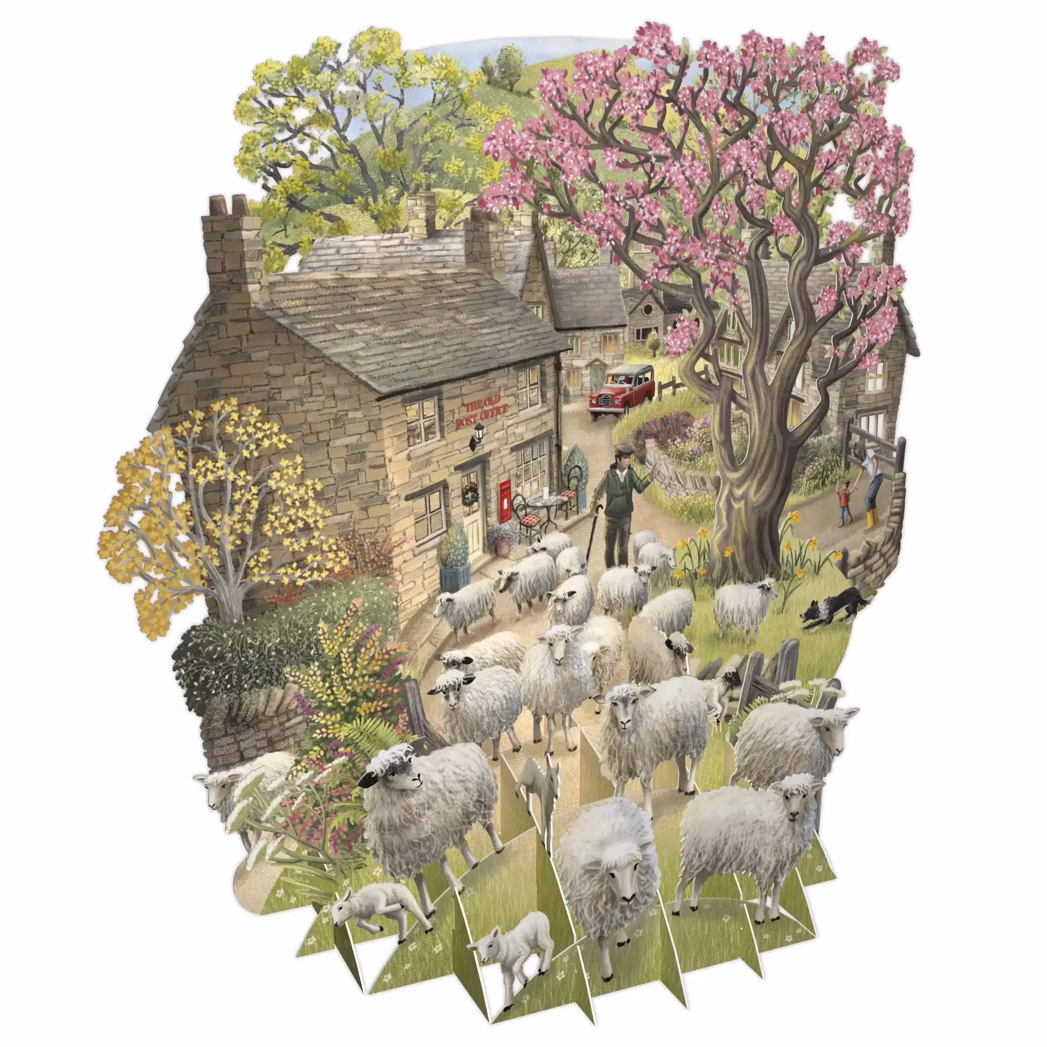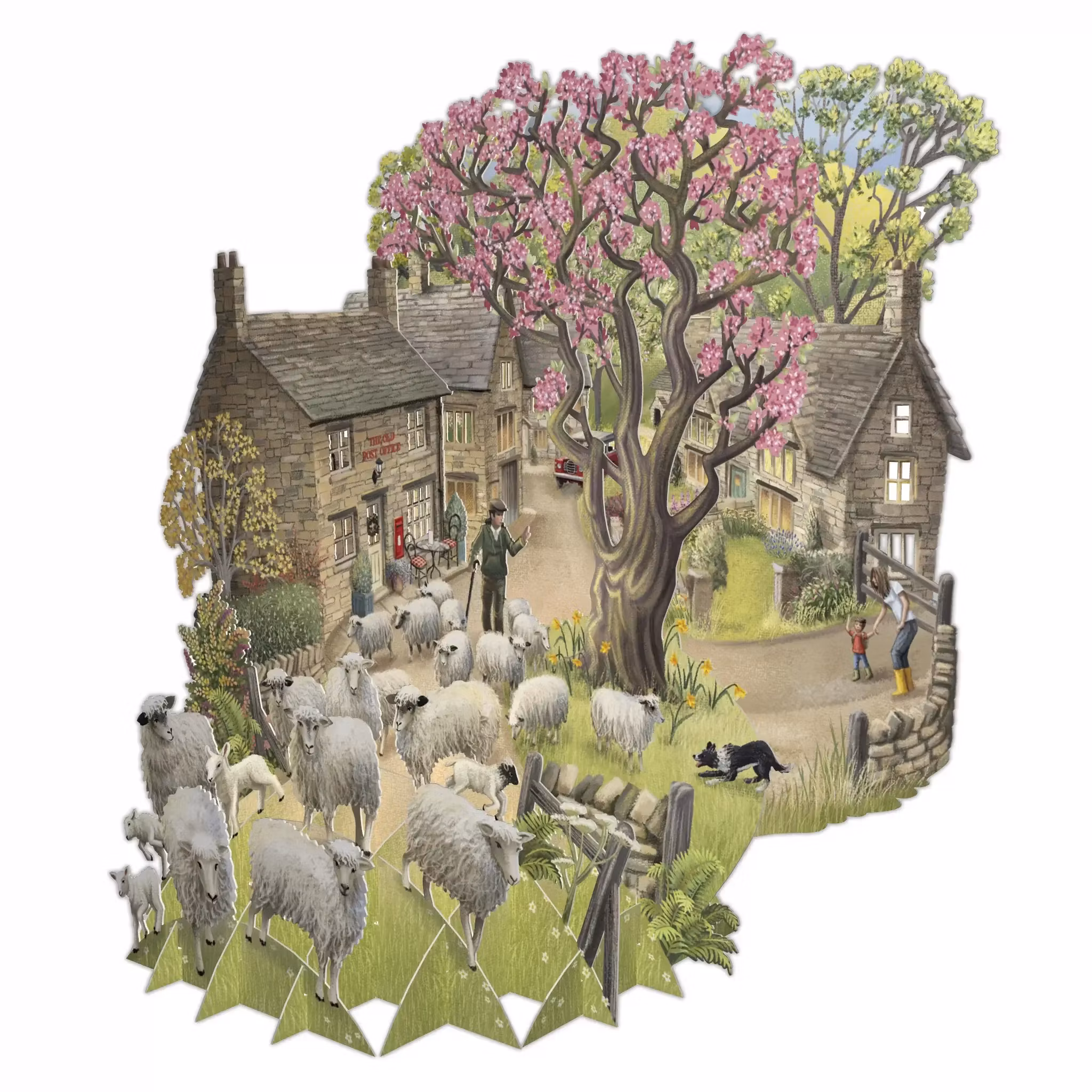 Här finns fåraherden som tar alla sina får genom den lilla byn.