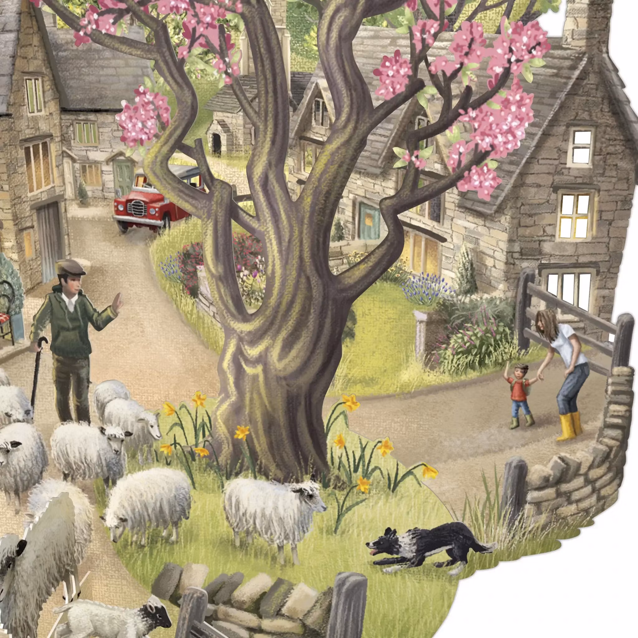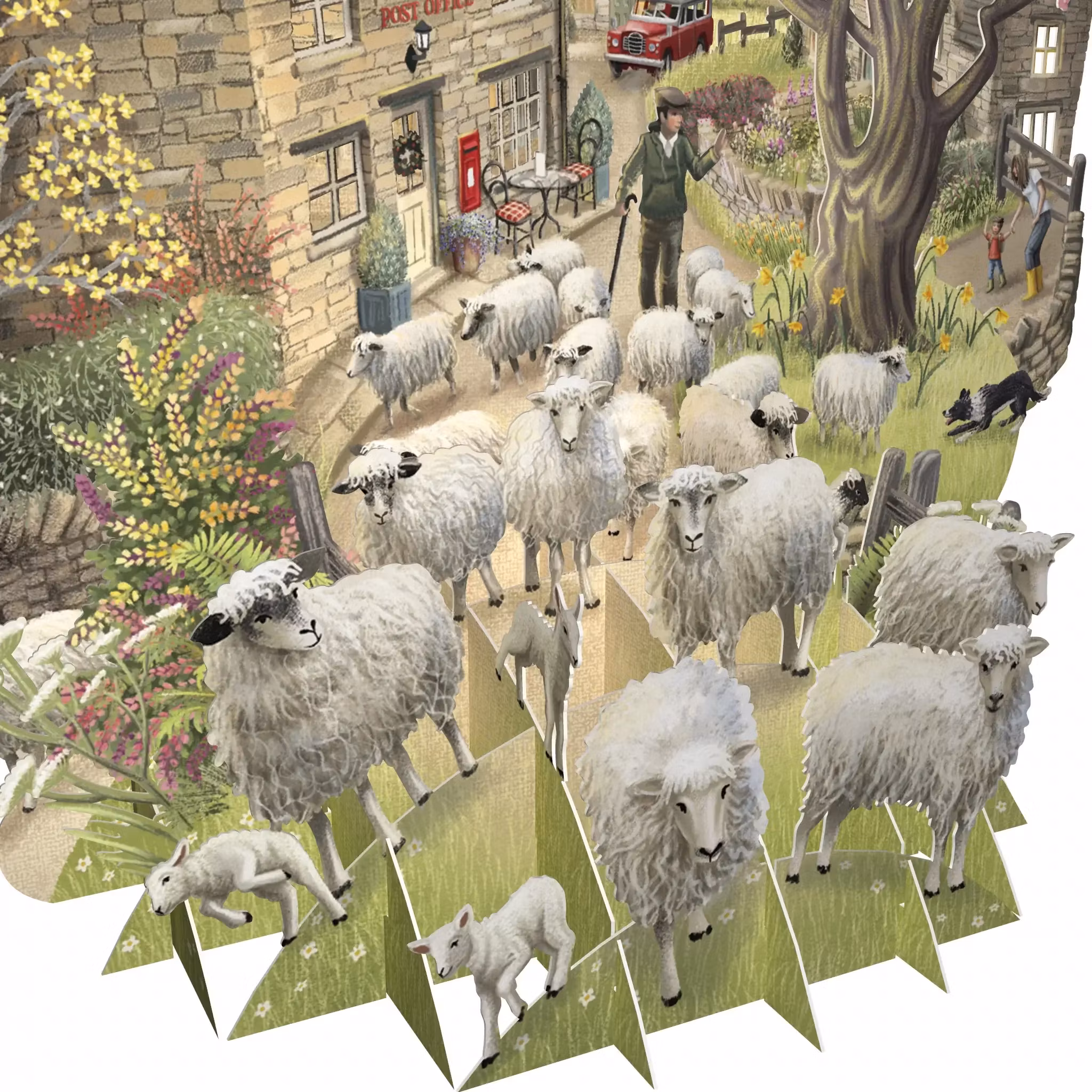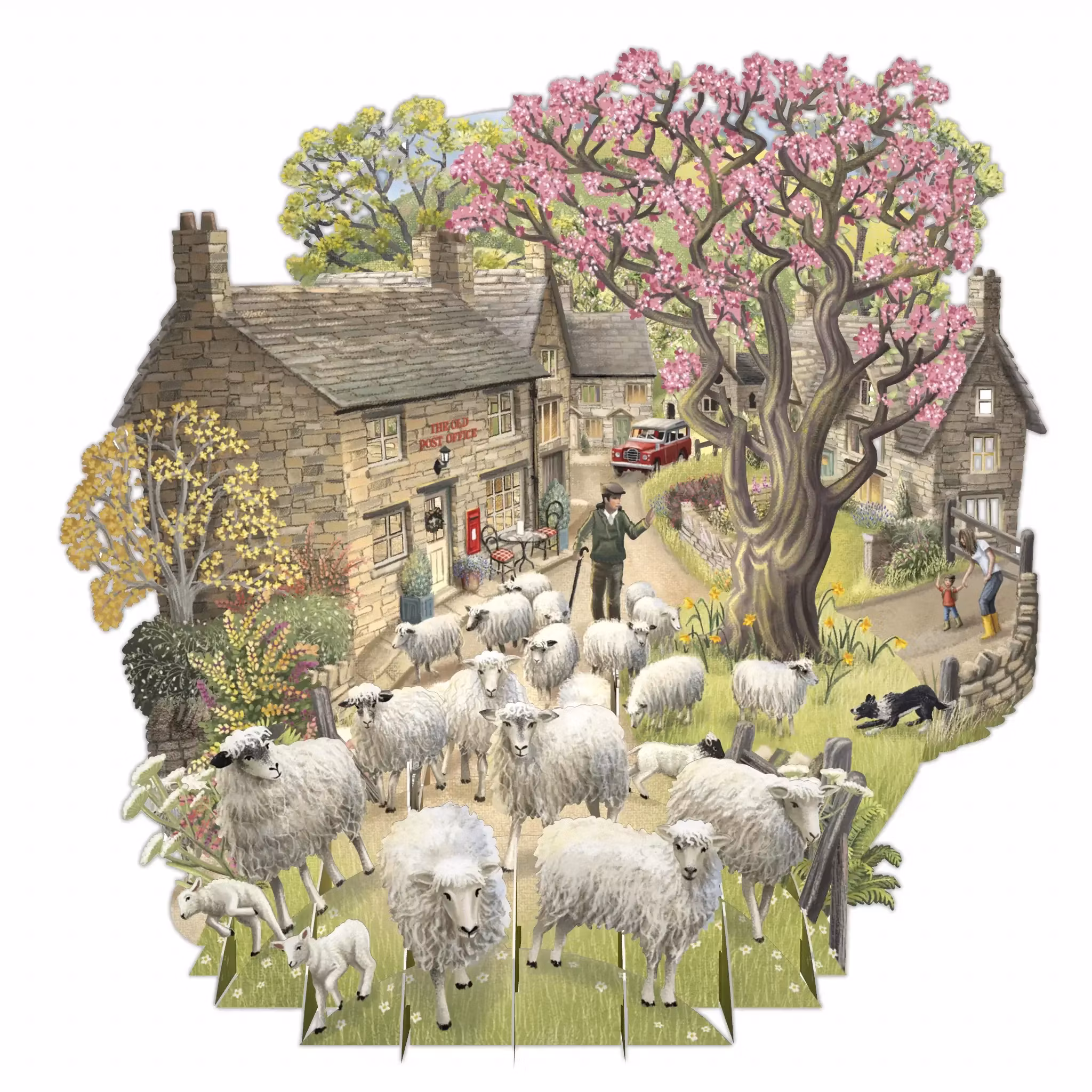 Här finns fåraherden som tar alla sina får genom den lilla byn.
