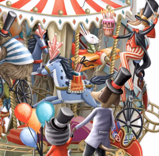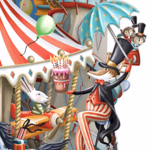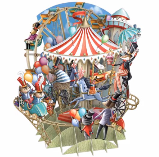 Här finns ett magiskt tivoli med karuseller och många underbara detaljer att titta på. Perfekt att skicka till någon som behöver bli ordentligt firad på sin födelsedag.