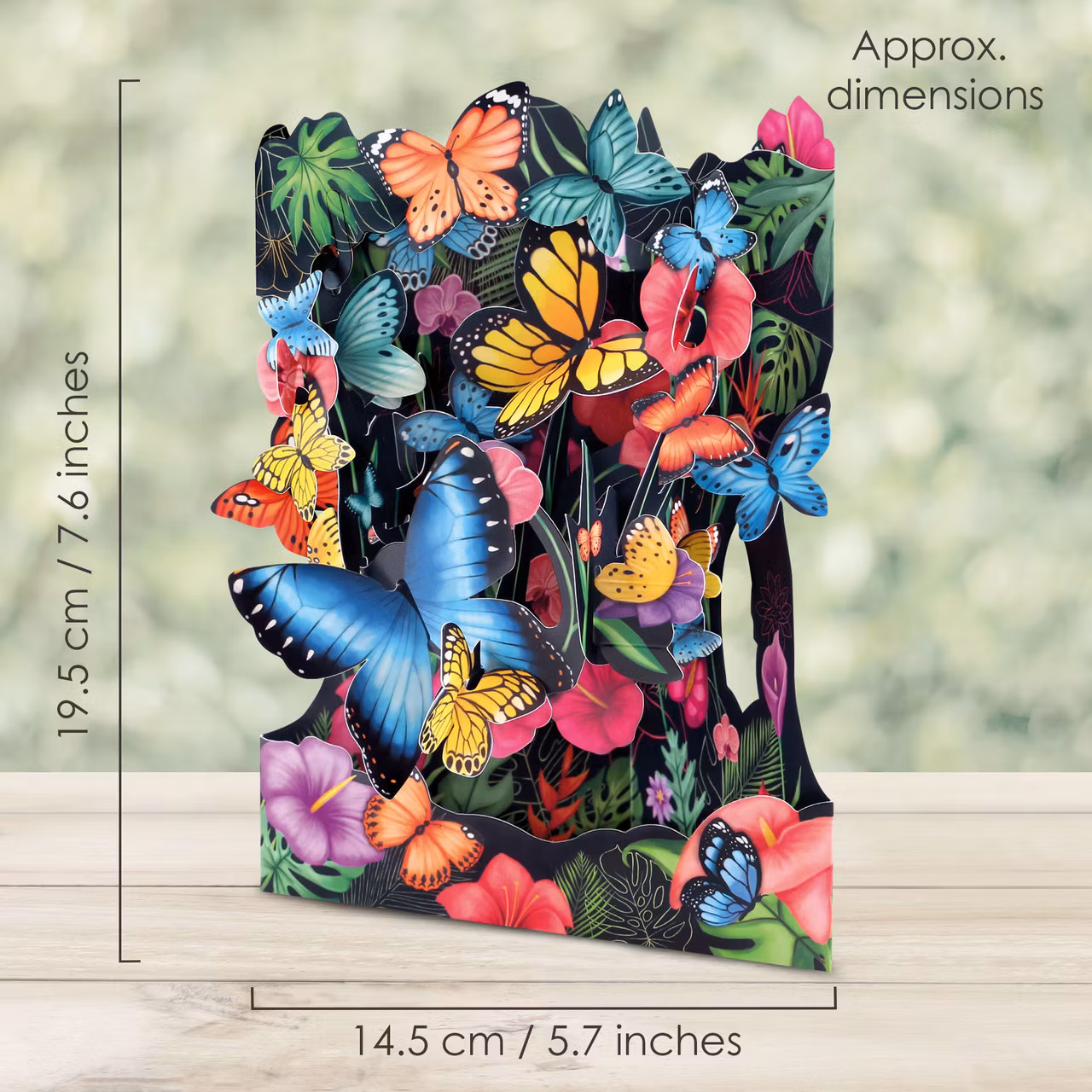 Här är ett riktigt fint kort i form av en vacker papperskulptur. Det här kortet är från serien Pop n Rock vilket innebär att kortet gungar fram och tillbaka om du stöter till det. Mottagaren fäller enkelt upp kortet och du kan skriva din hälsning på baksidan av kortet. Kortet innehåller flera rörliga delar vilka rör sig när kortet gungar fram och tillbaka.