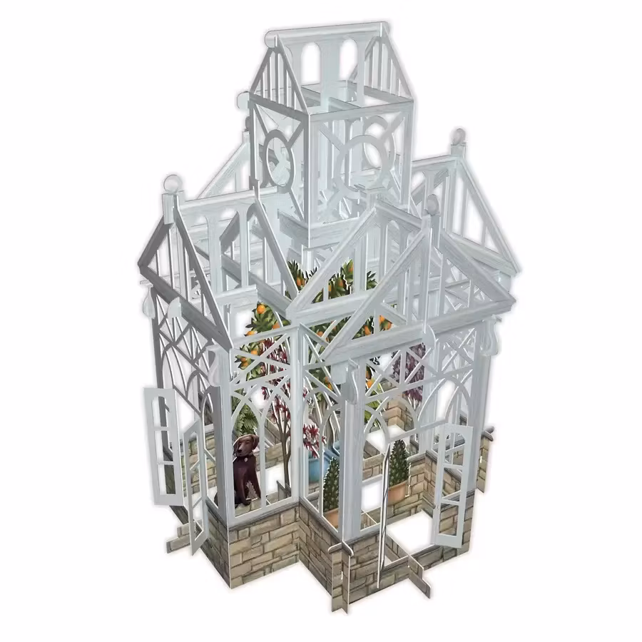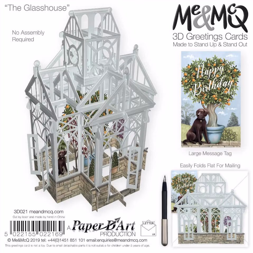 Härligt kort som levereras platt till mottagaren men som sedan viks upp och ut för att förvandlas till en vacker prydnad att ha på bordet.