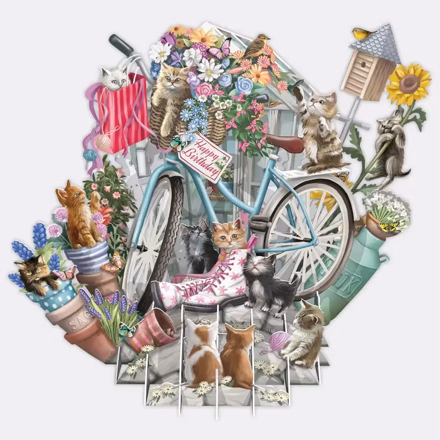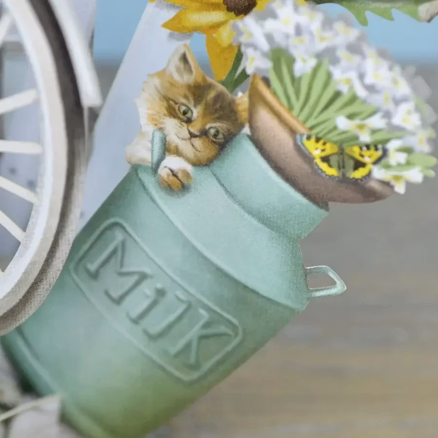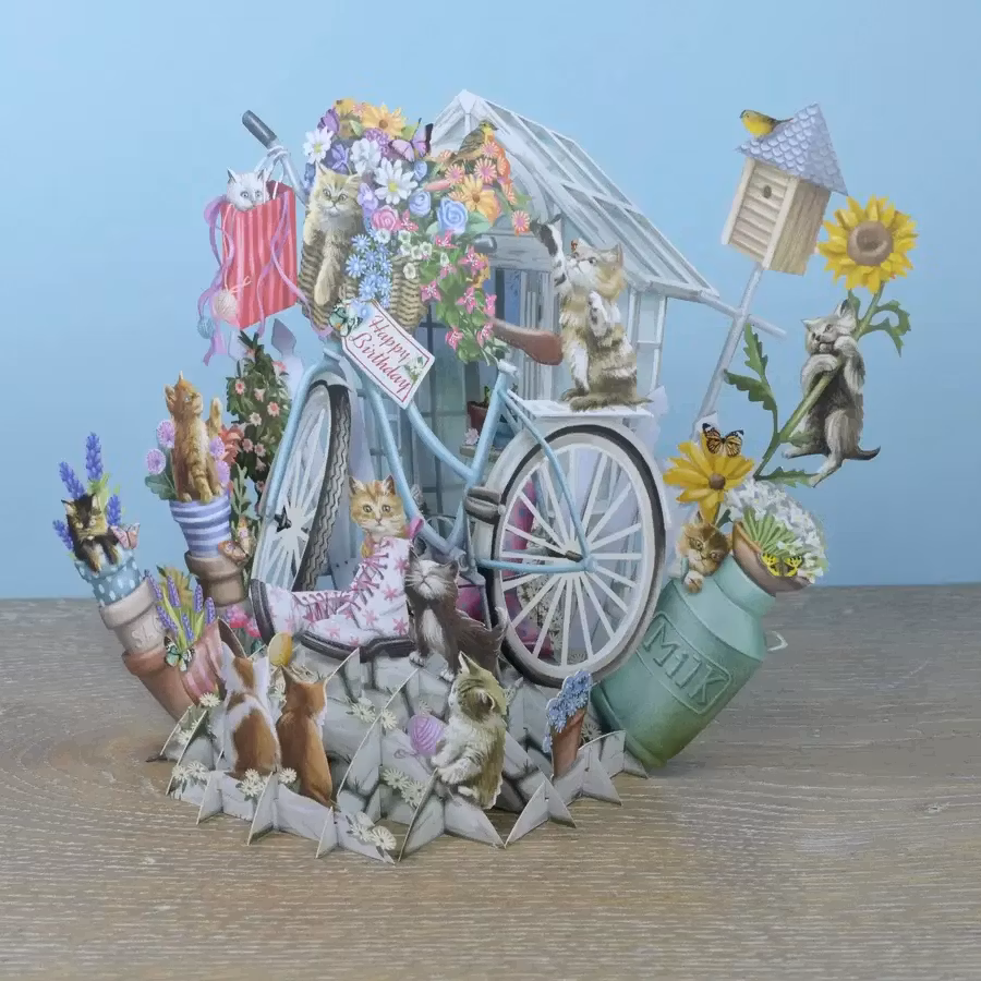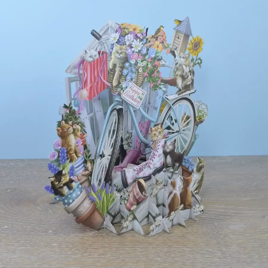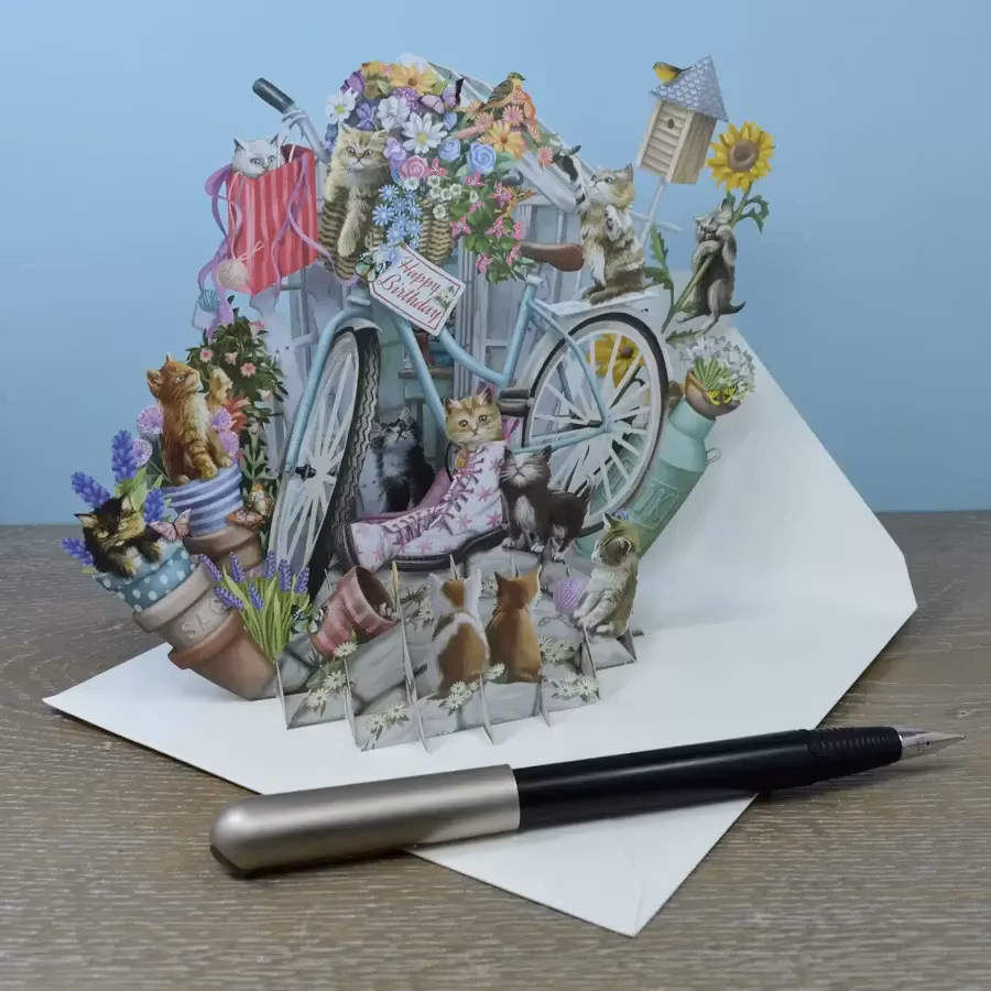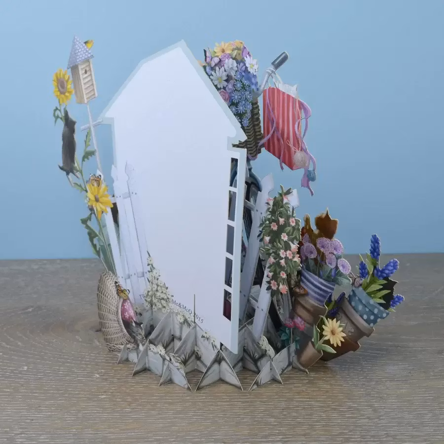 Härligt kort som levereras platt till mottagaren men som sedan viks upp och ut för att förvandlas till en vacker prydnad att ha på bordet.