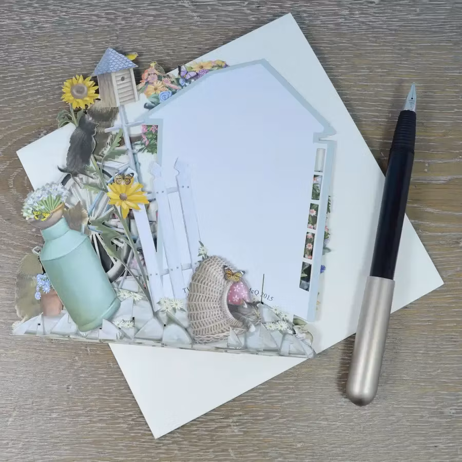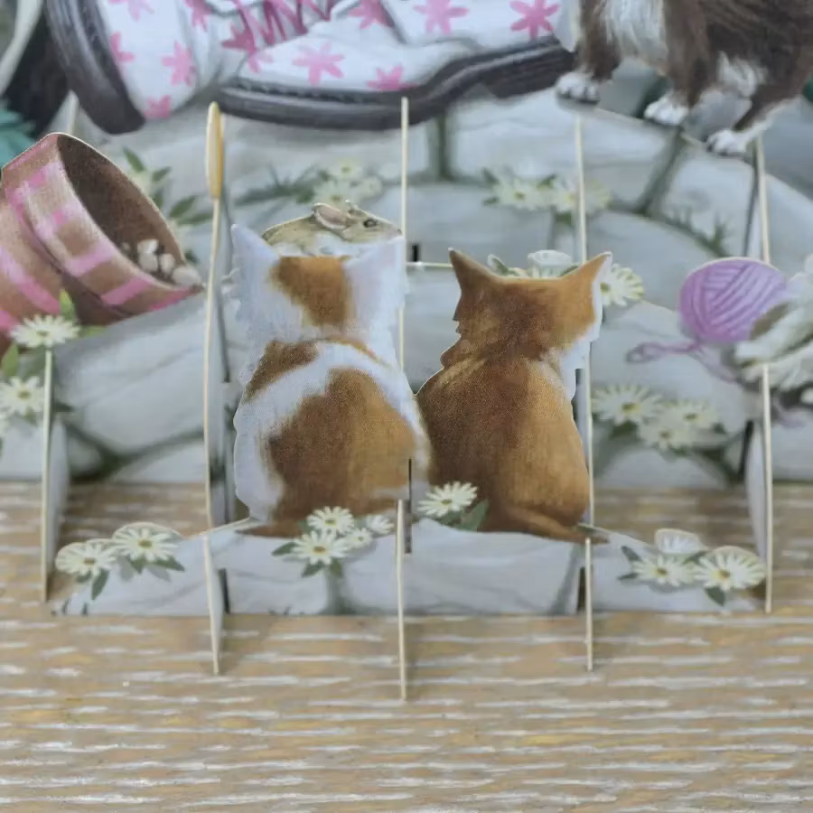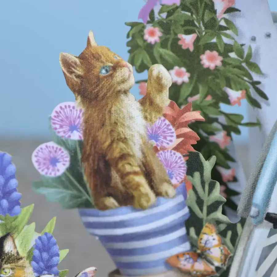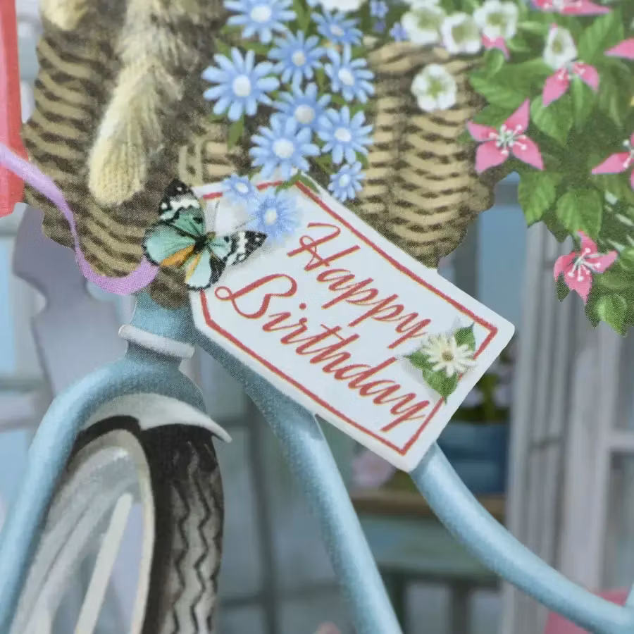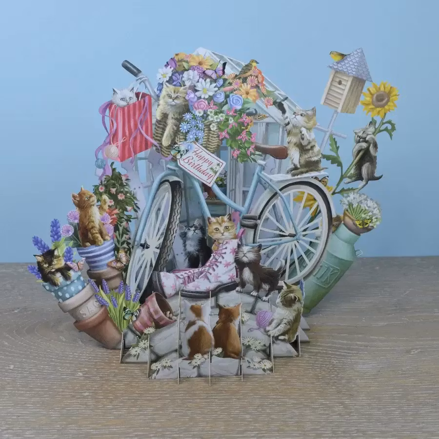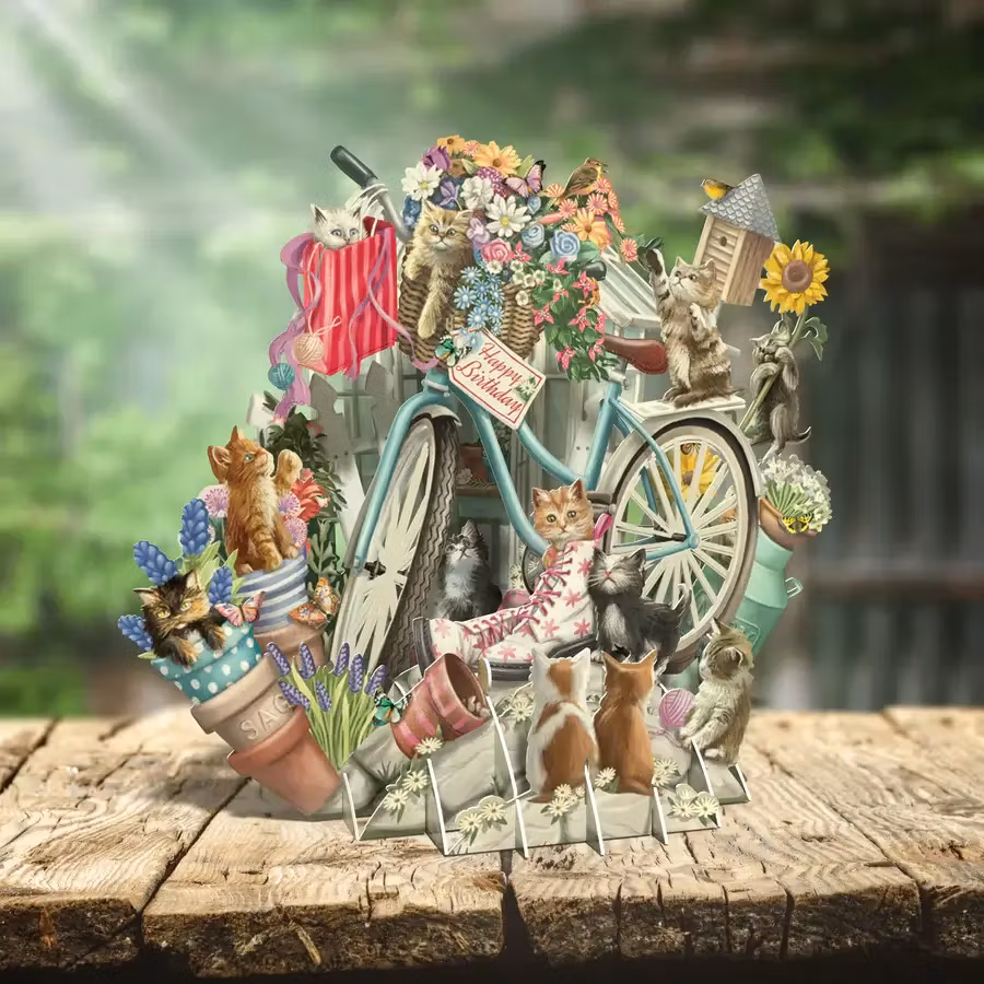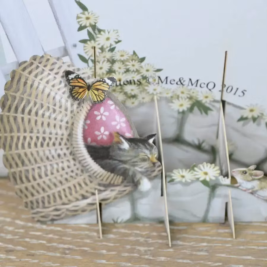 Härligt kort som levereras platt till mottagaren men som sedan viks upp och ut för att förvandlas till en vacker prydnad att ha på bordet.