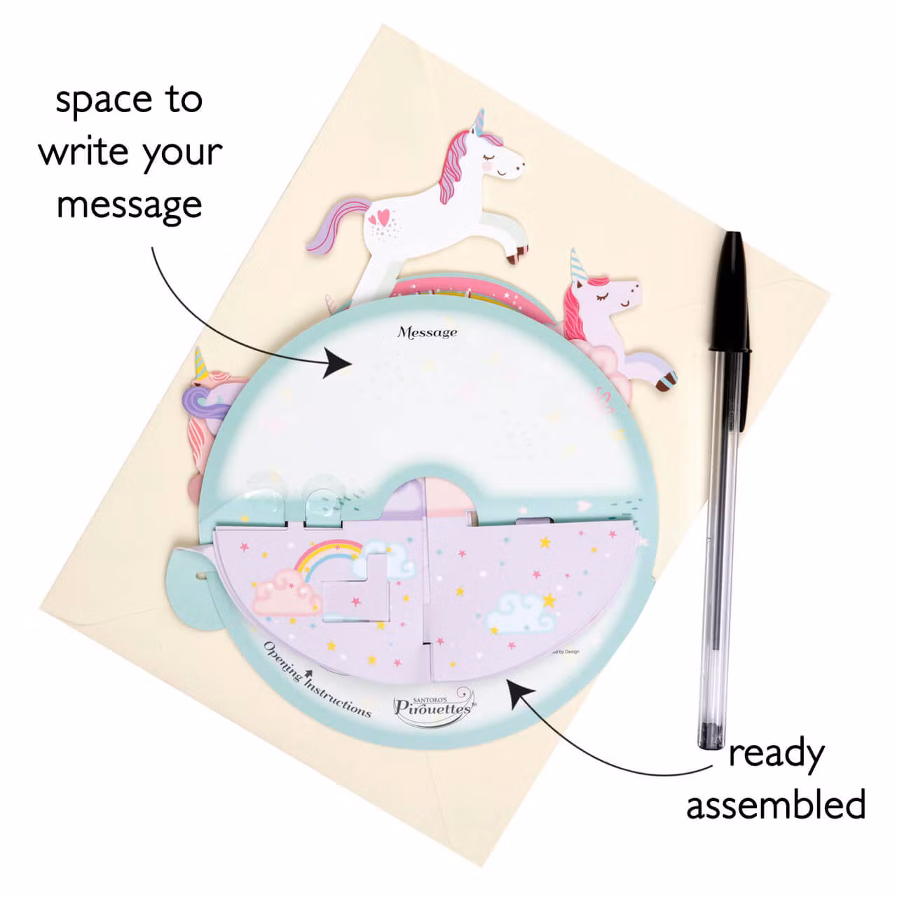 Här är ett riktigt fint kort i form av en vacker papperskulptur. Det här kortet snurrar runt och visar allt det vackra från olika håll. Kortet levereras platt och mottagaren fäller enkelt upp kortet. Du kan skriva din hälsning till mottagaren på baksidan av kortet.