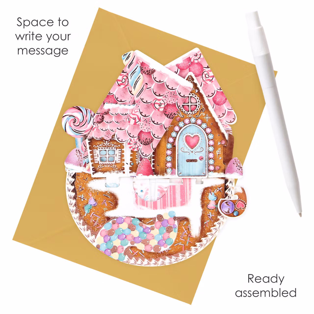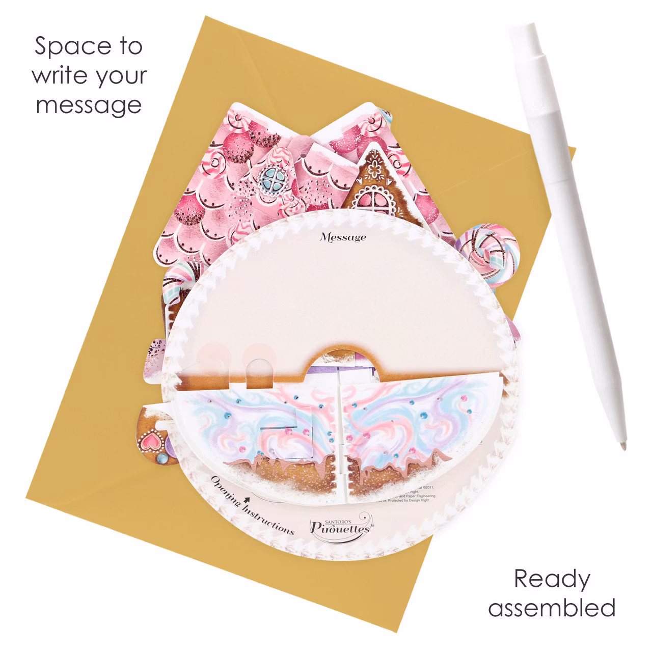 Utvikbart, magiskt julkort - Snurrande pepparkakshus (Fraktfritt)