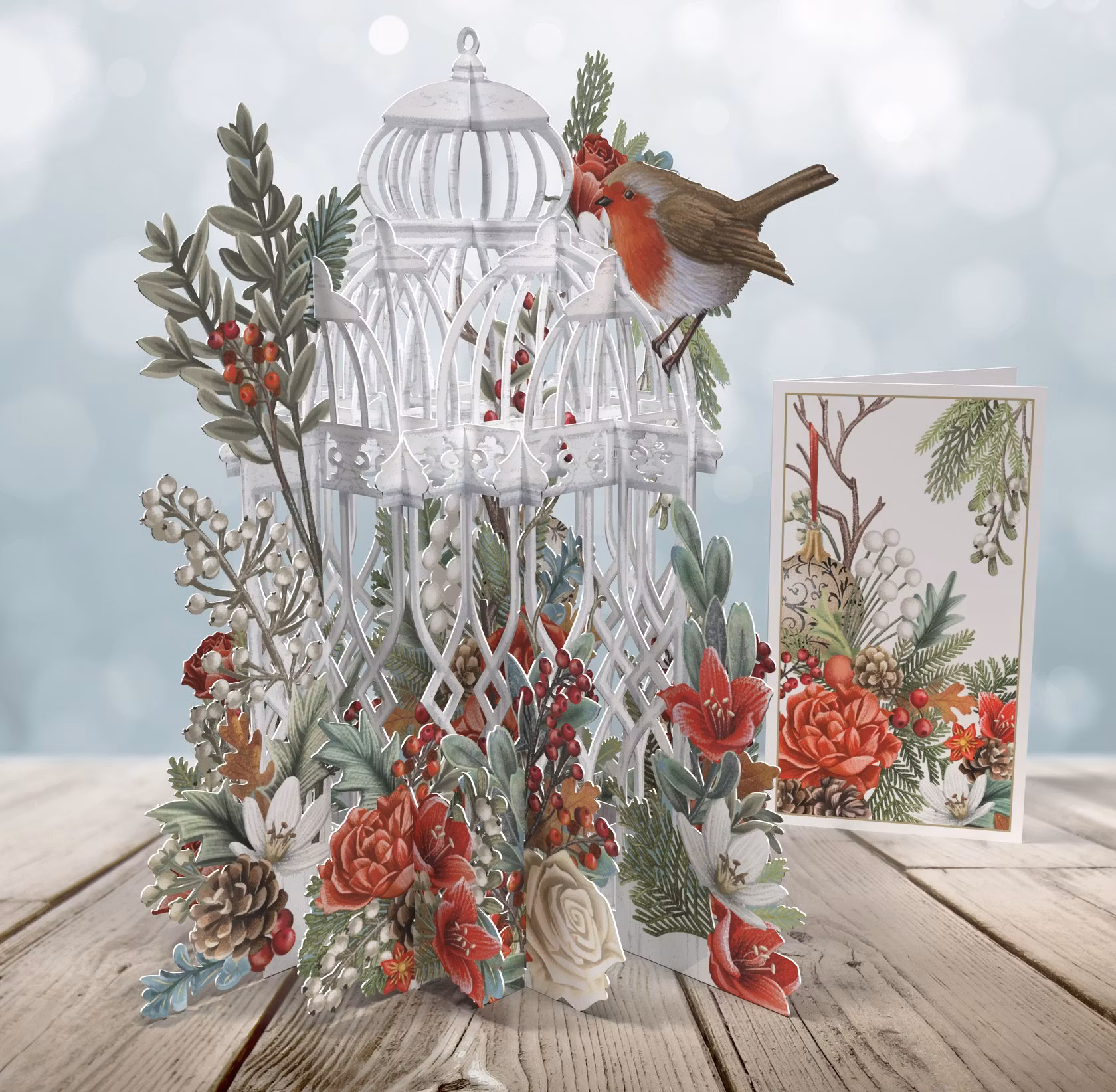 Underbart kort som är som en liten pappersskulptur som mottagaren viker upp.