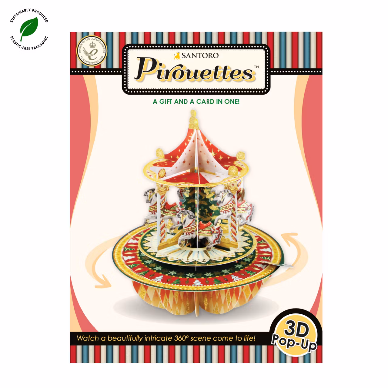 Här är ett riktigt fint kort i form av en vacker papperskulptur. Det här kortet snurrar runt och visar allt det vackra från olika håll. Kortet levereras platt och mottagaren fäller enkelt upp kortet. Du kan skriva din hälsning till mottagaren på baksidan av kortet.