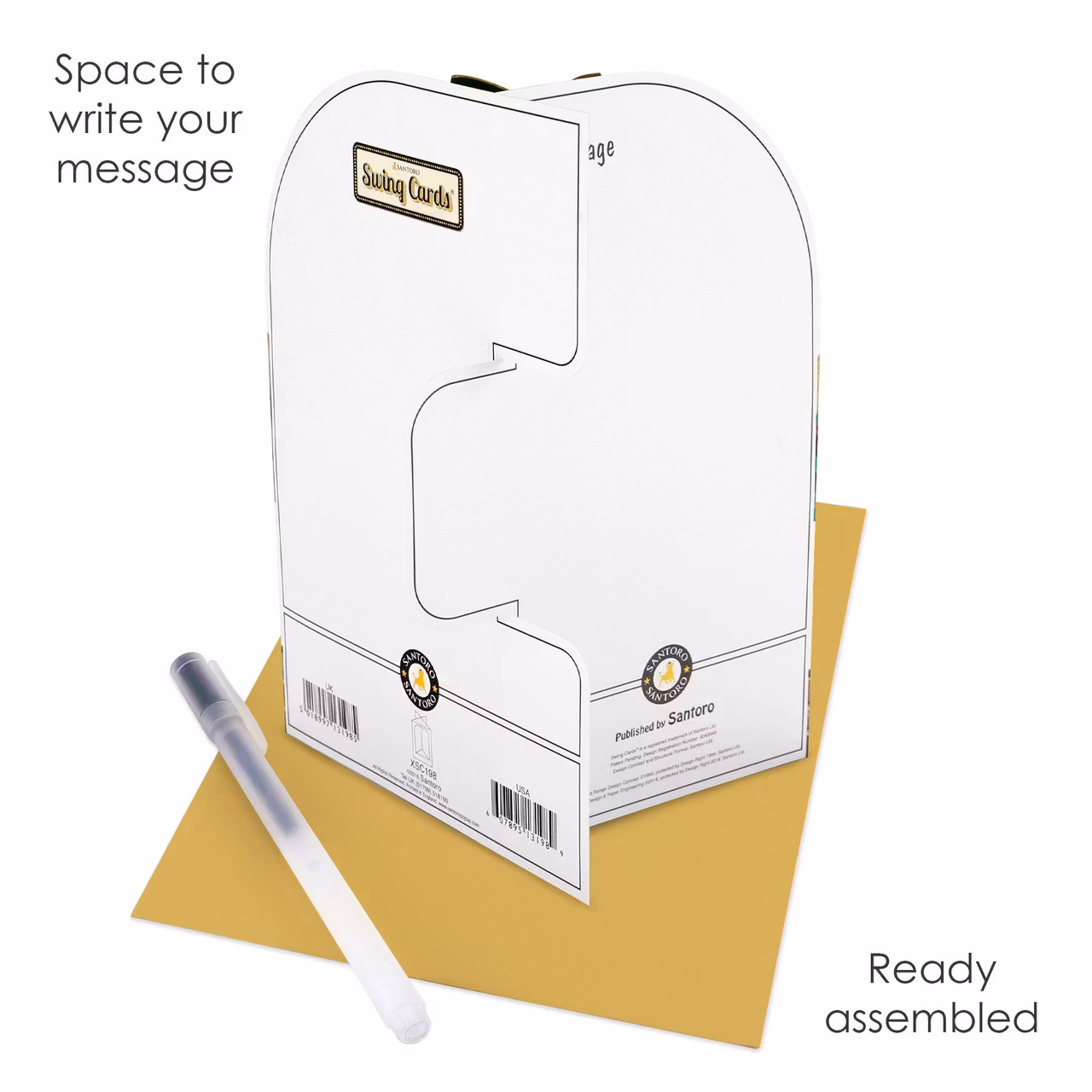 Ett riktigt fint, utvikbart kort med flera rörliga delar. Det här kortet levereras platt och mottagaren viker sedan lätt upp det. Du skriver din hälsning till mottagaren på baksidan av kortet. Det här är mer som en kombination av kort och present än enbart ett kort. Mottagaren kommer vilja ha kortet framme länge, länge för att hinna titta på det ordentligt.