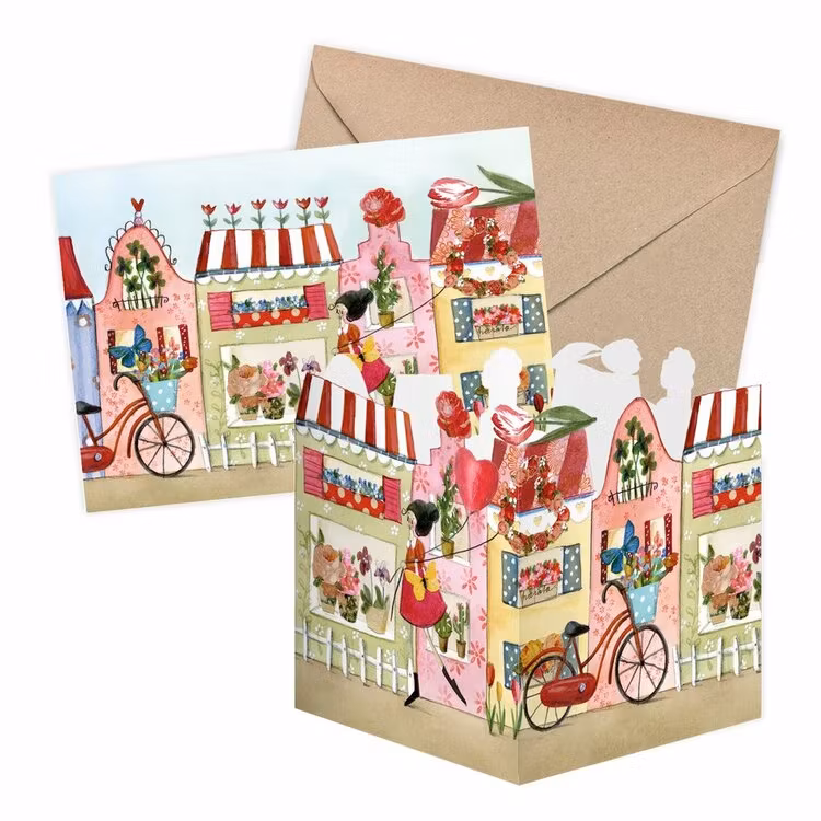 Det medföljer ett kuvert och ett vykort med samma motiv där du kan skriva din hälsning till mottagaren.