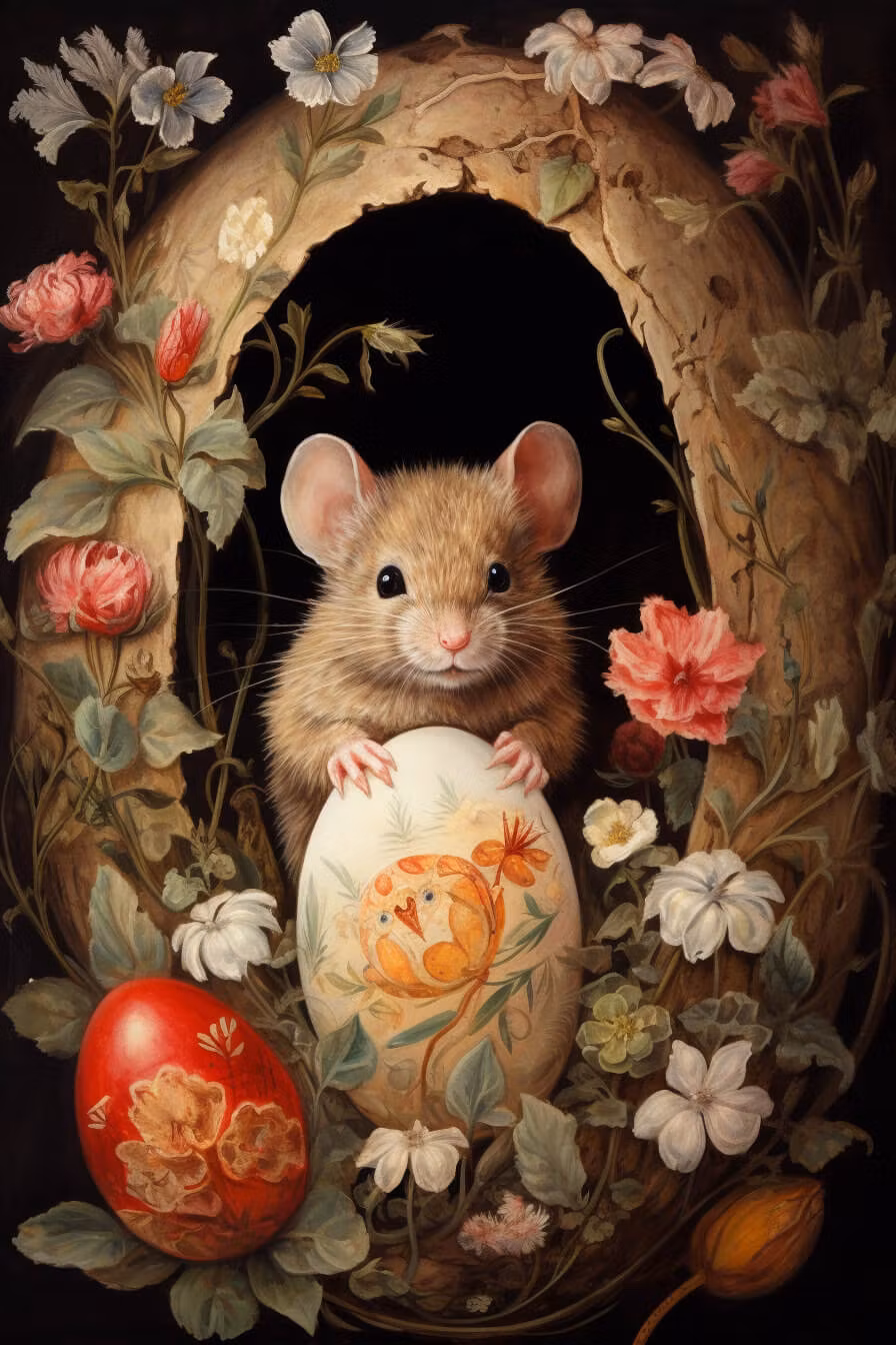 Underbart vackert kort med musen som håller i det vackra ägget. Ett kort som passar fint både som påskkort och till andra tillfällen.