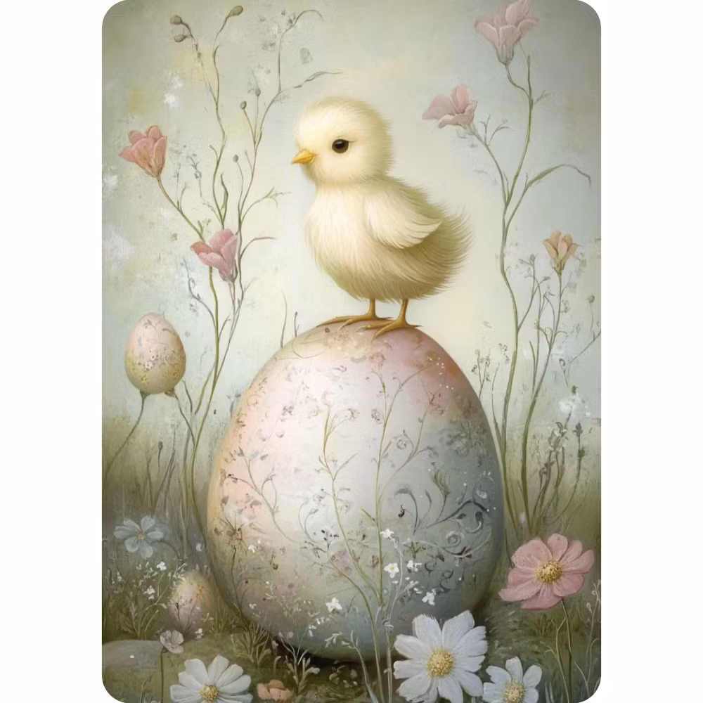 Här balanserar den söta kycklingen på det fina ägget.