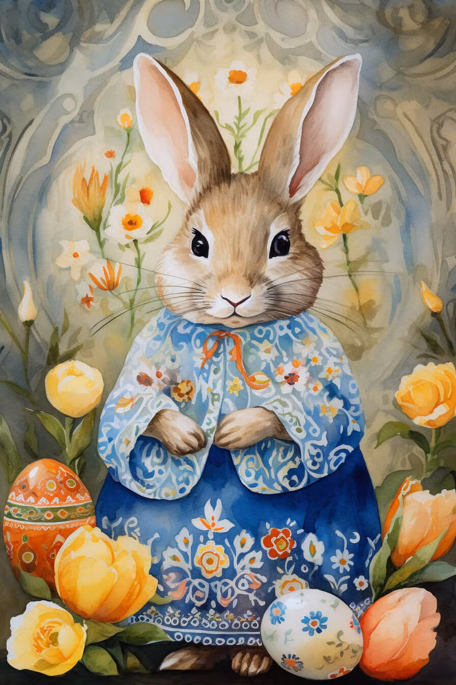 Underbart fint påskkort i vackra, klara akvarellfärger.