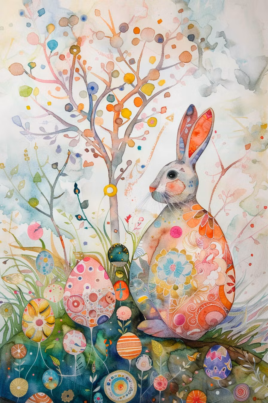 Påskharen målad med akvarellfärger.