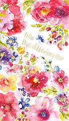 Färgglatt kort med färgglada blommor.