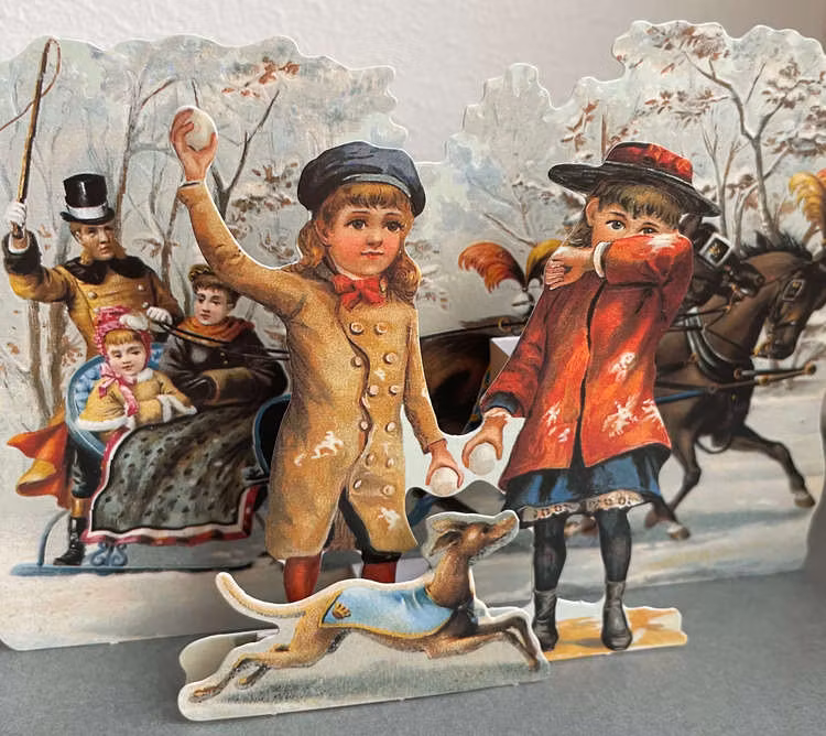 Här viker du upp kortet så att en härlig 3D-effekt uppstår. Ett vackert och speciellt kort med vintagekänsla och ett äldre motiv. En fin hälsning att skicka till någon.