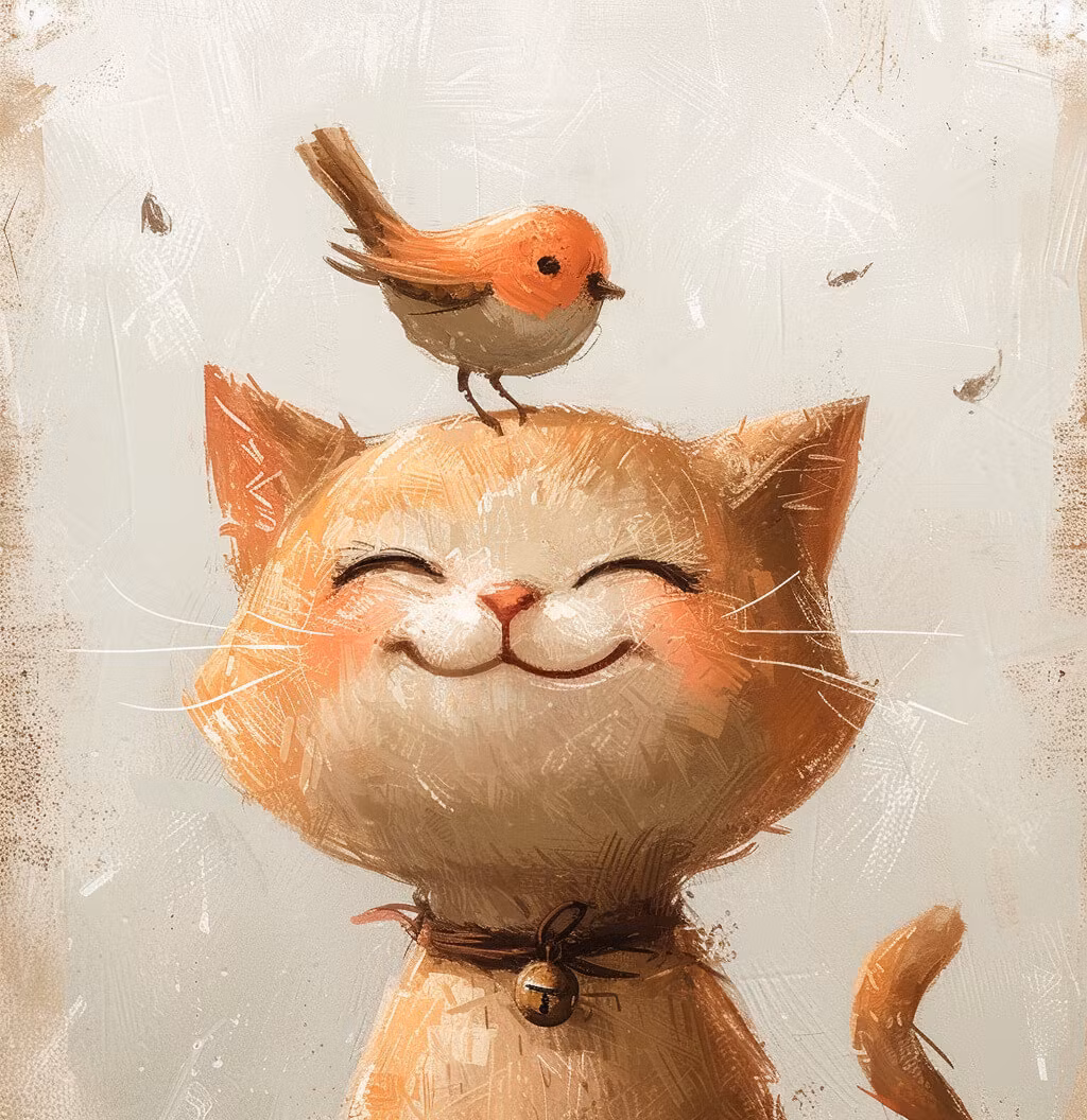 Underbart litet kort med katten och fågeln.