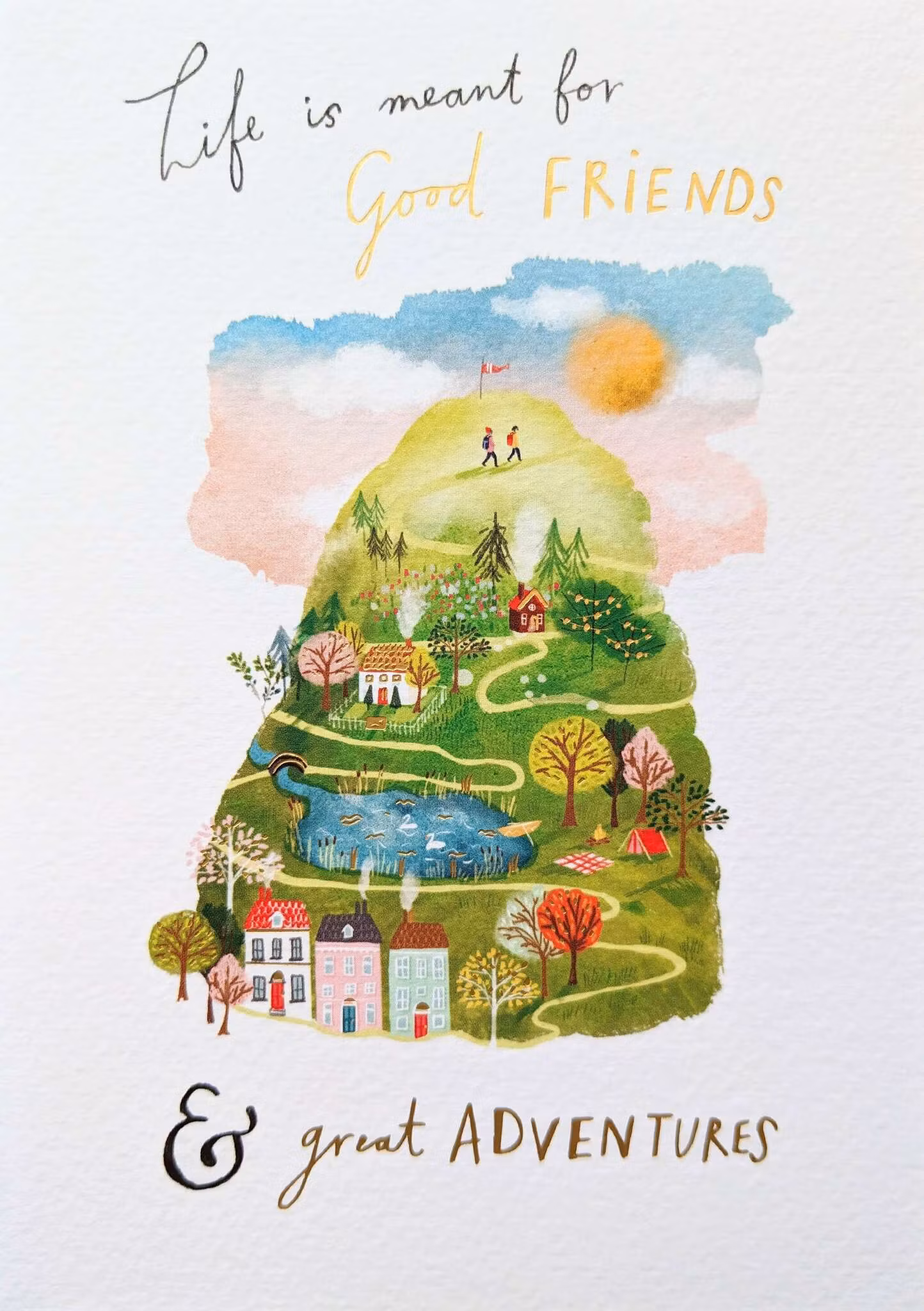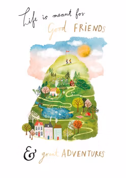 På kortet finns texten "Life is meant for Good friends & great adventures".