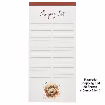 Underbart inköpsblock med illustration med den söta hunden. Blocket har linjerade sidor som du lätt kan riva av och ta med till affären.
