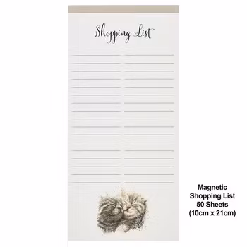 Underbart inköpsblock med illustration med söta katter. Blocket har linjerade sidor som du lätt kan riva av och ta med till affären.