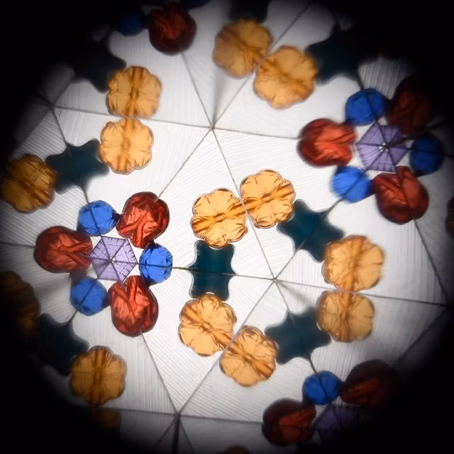 När du vrider på kolven längst fram rör sig prismorna inne i röret och du kan se hur färgerna ändrar form.