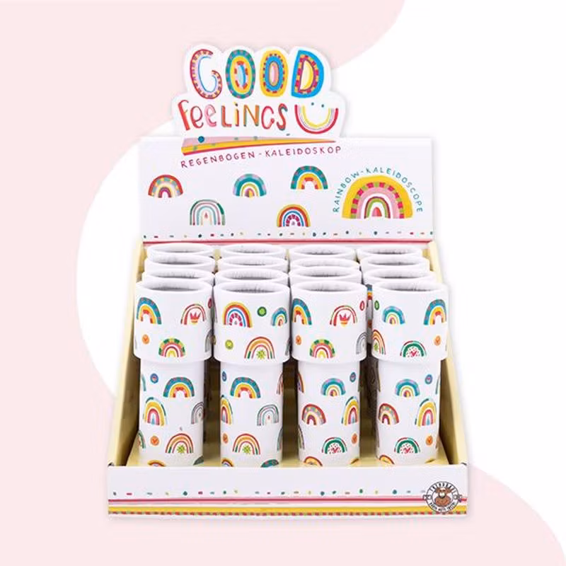 Ett färgglatt regnbåge-kalejdoskop som gör att du ser världen på ett nytt och mer färgstarkt sätt. Vrid på kalejdoskopet för att se unika mönster.