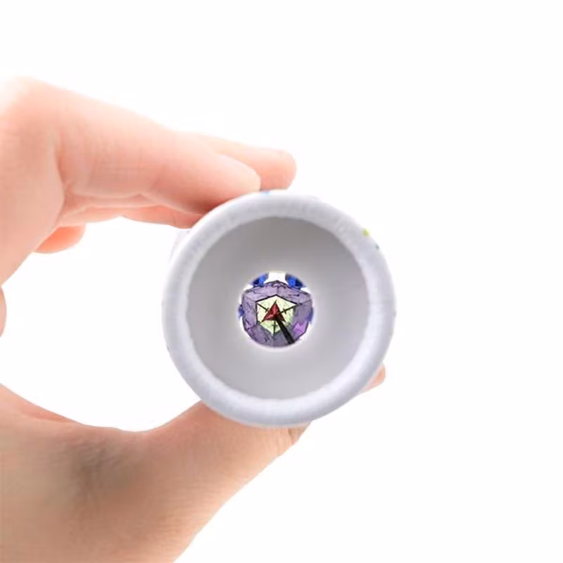 Ett färgglatt regnbåge-kalejdoskop som gör att du ser världen på ett nytt och mer färgstarkt sätt. Vrid på kalejdoskopet för att se unika och fascinerande mönster.