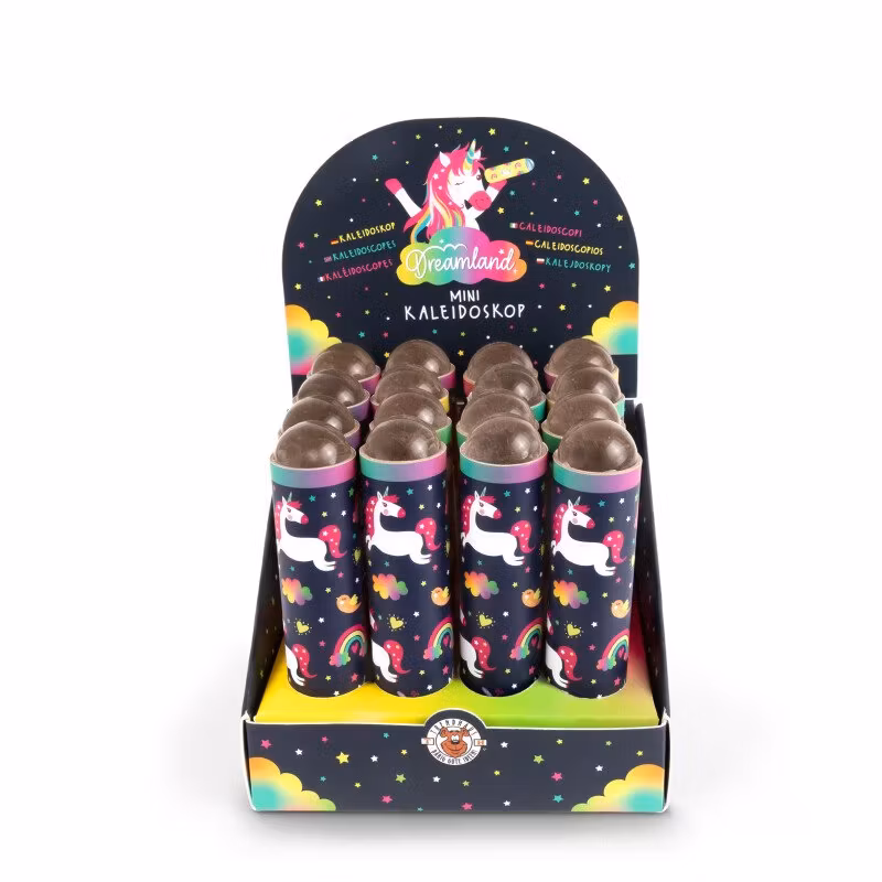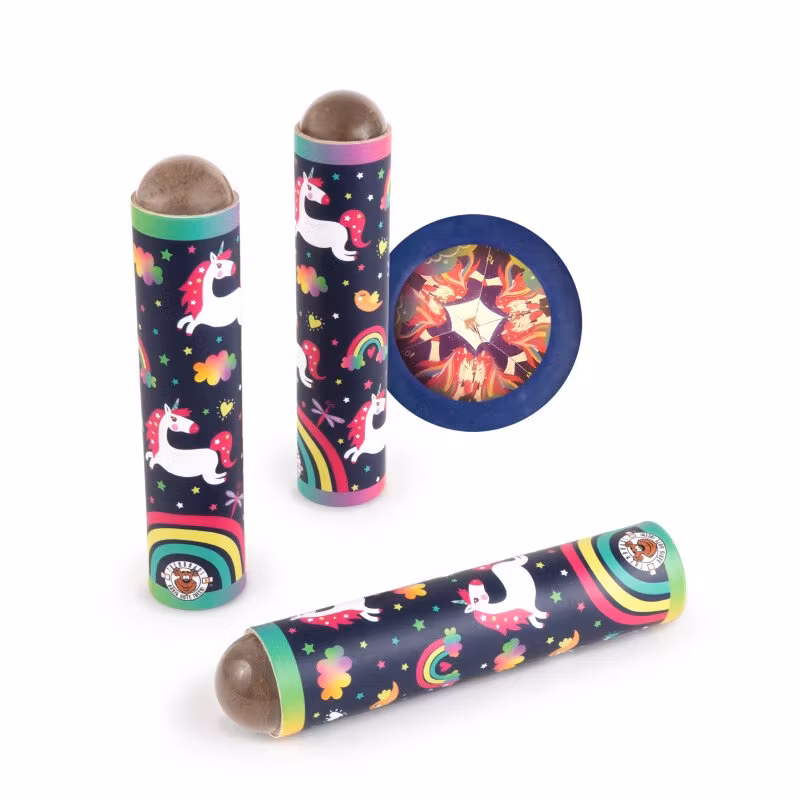 Litet Kalejdoskop - Enhörningar 59 kr Här finns ett fint kalejdoskop med glada enhörningar, moln och regnbågar. När du vrider på kolven längst fram rör sig prismorna inne i röret. Lägg i korgen Dela Här finns ett sött, liten kalejdoskop med enhörningstema.Storlek 12,5 x 2,8 cmEj till barn under 3 år pga smådelar.