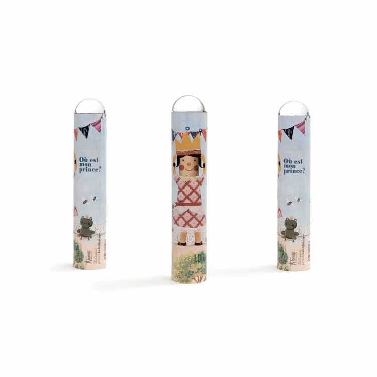 Fint oktaskop med prinsessan som undrar om grodan är en förtrollad prins.Skillnaden mot ett kalejdoskop är att det inte finns några pärlor eller annat som förvr