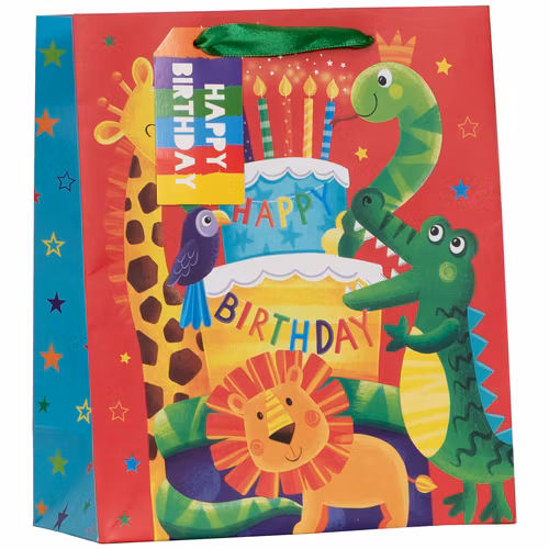 Härlig påse med djuren som kommer för att fira den som fyller år. På påsen står det Happy Birthday och det sitter en lapp där du kan skriva din hälsning.