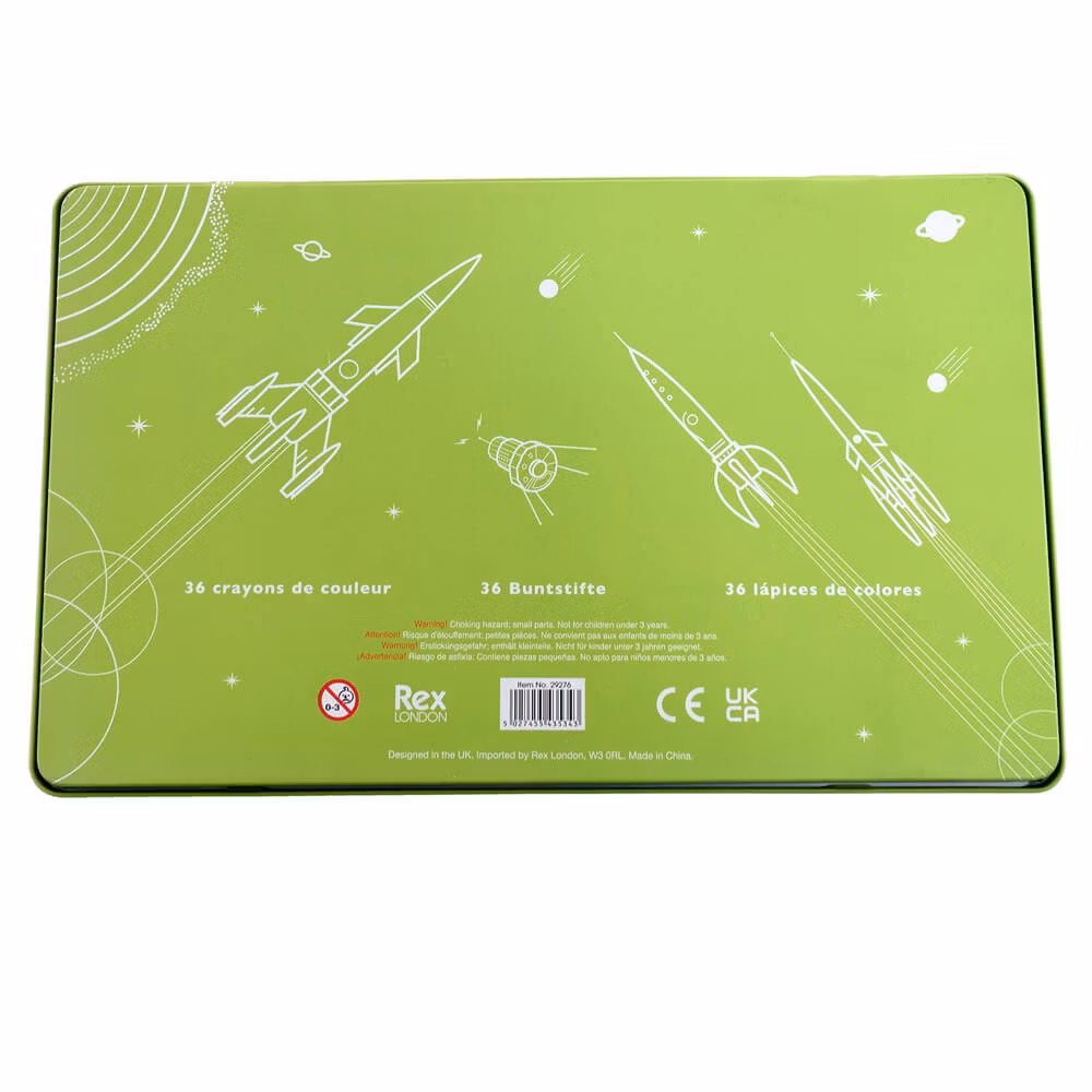 Denna fina plåtlåda med färgpennor är en perfekt present till en blivande ung konstnär. Med 36 pennor i uppsättningen har du alltid rätt färg för alla dina teckningar.
