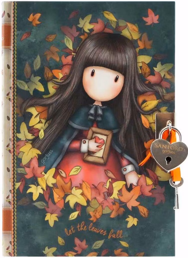 Dagboken har 240 linjerade sidor och två hjärtformade nycklar.