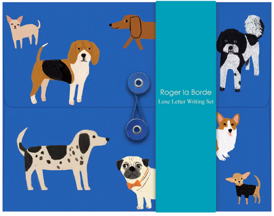 Härligt brevpapper med kuvert med tema hundar. Paketet innehåller 10 brevpapper med två olika motiv samt 10 matchande kuvert. Två ark med klistermärken.