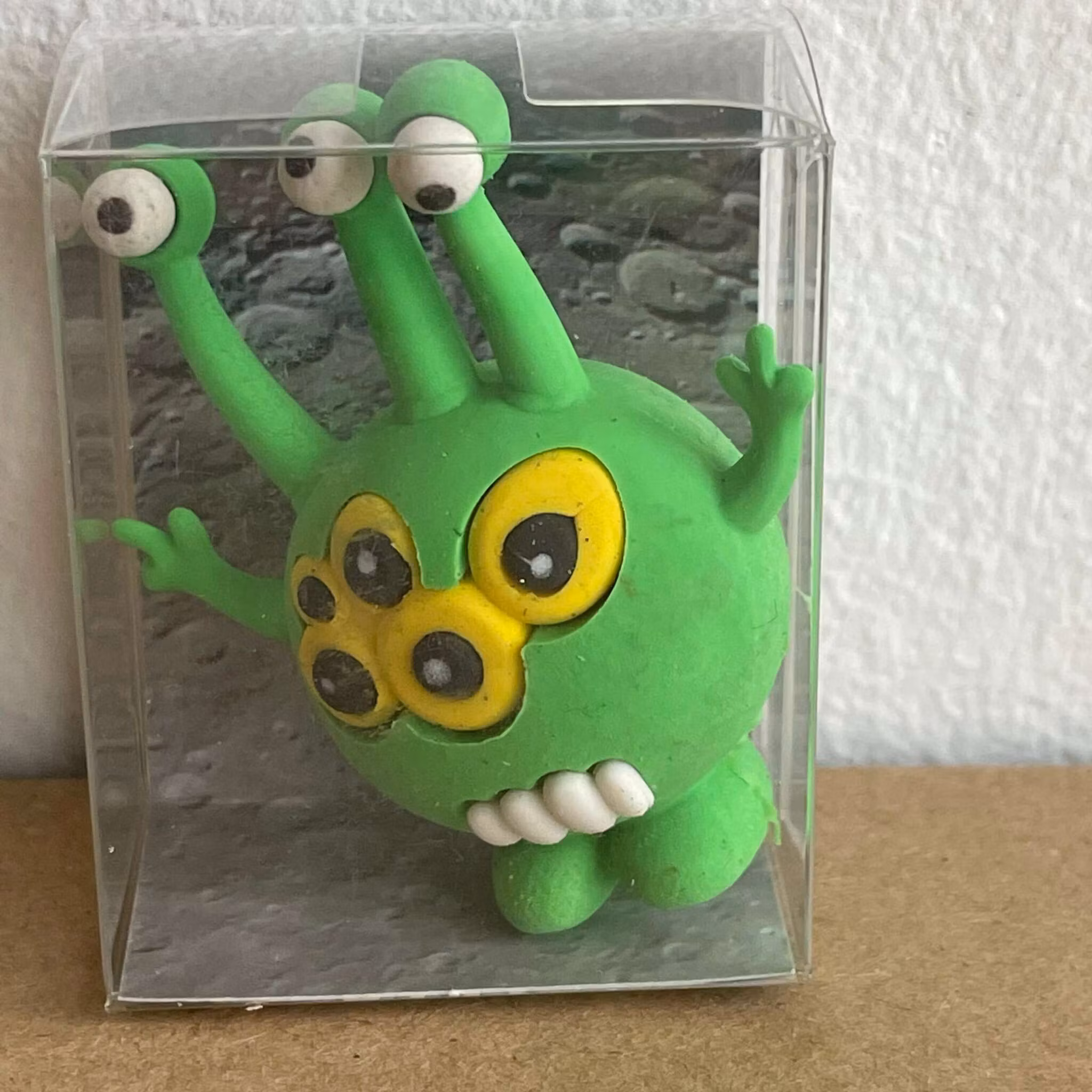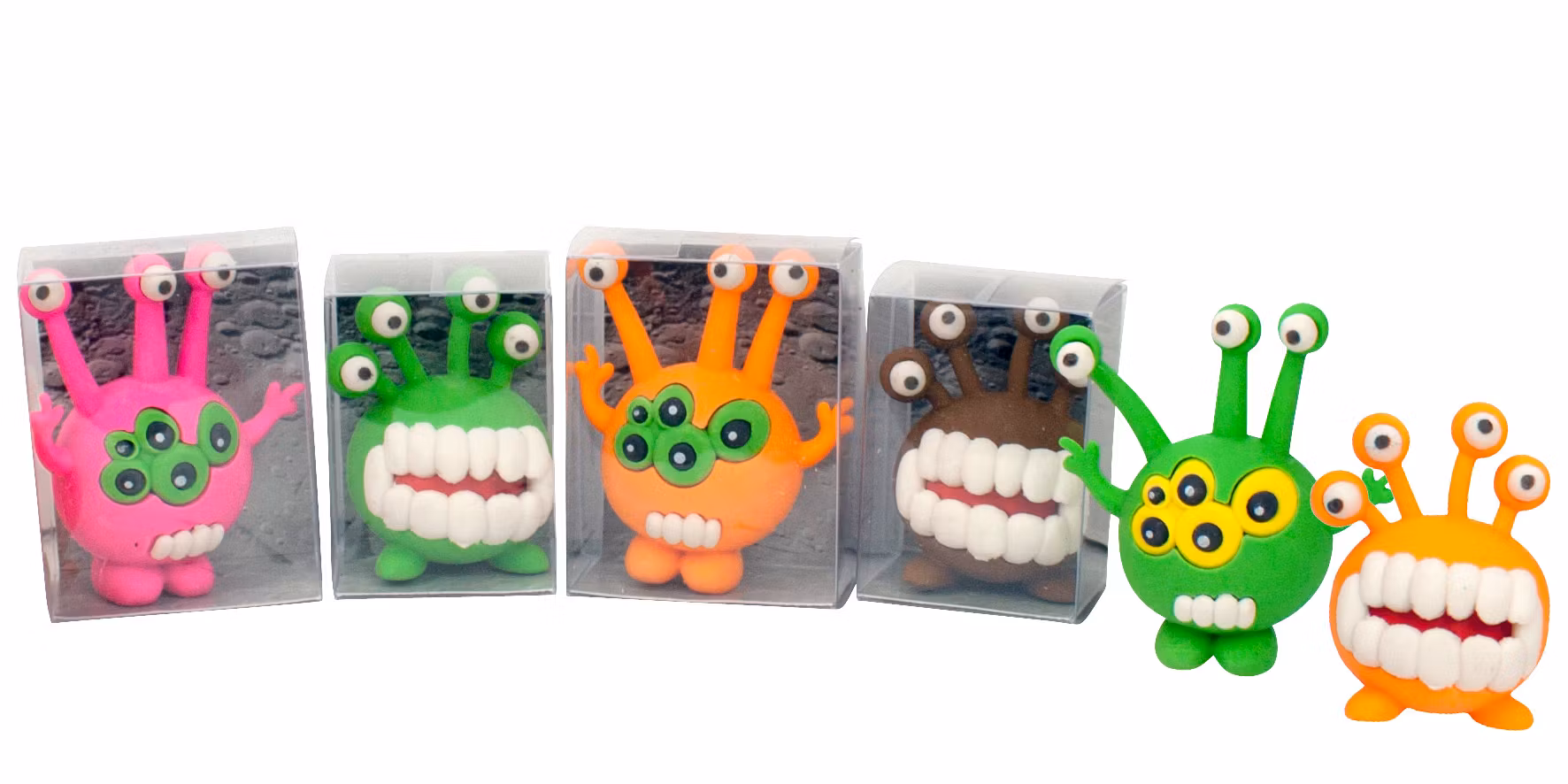 Roliga suddgummin i form av små knubbiga utomjordingar. Dessa runda filurer har extra många ögon och de håller ofta ögonen på skaft efter ett misstag.