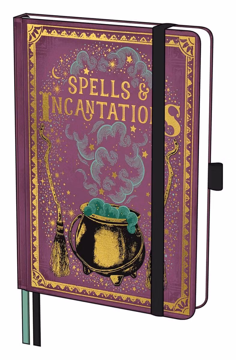 Boken har 180 blad och hålls ihop med ett gummiband. Det finns en pennhållare på sidan av boken.