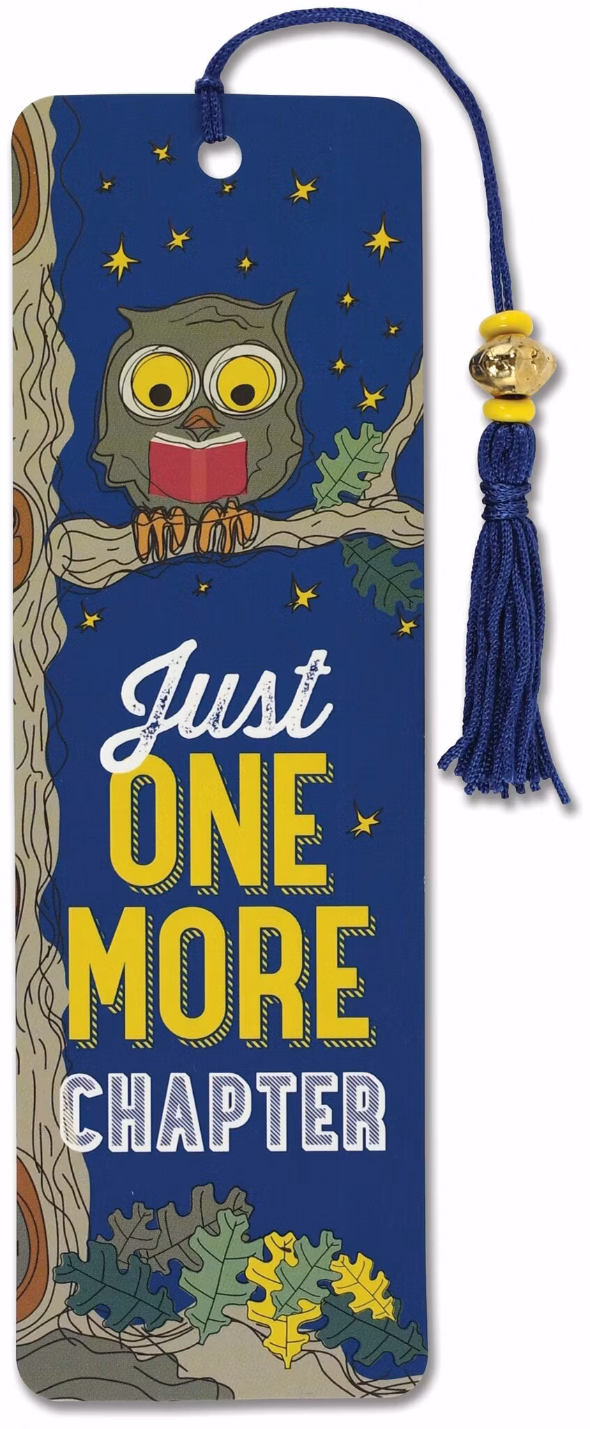 Hitta lätt och rätt till där du slutade läsa med ett riktigt fint bokmärke! Här är ett bokmärke med ugglan som bara vill läsa ett kapitel till!