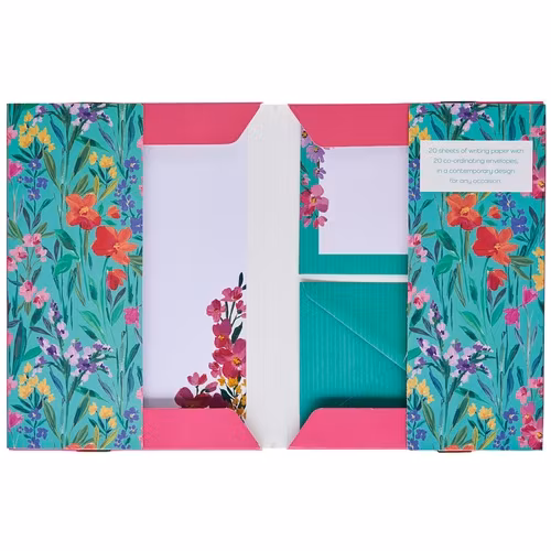 Allt finns samlat i en fin, blommig folder i papp.
