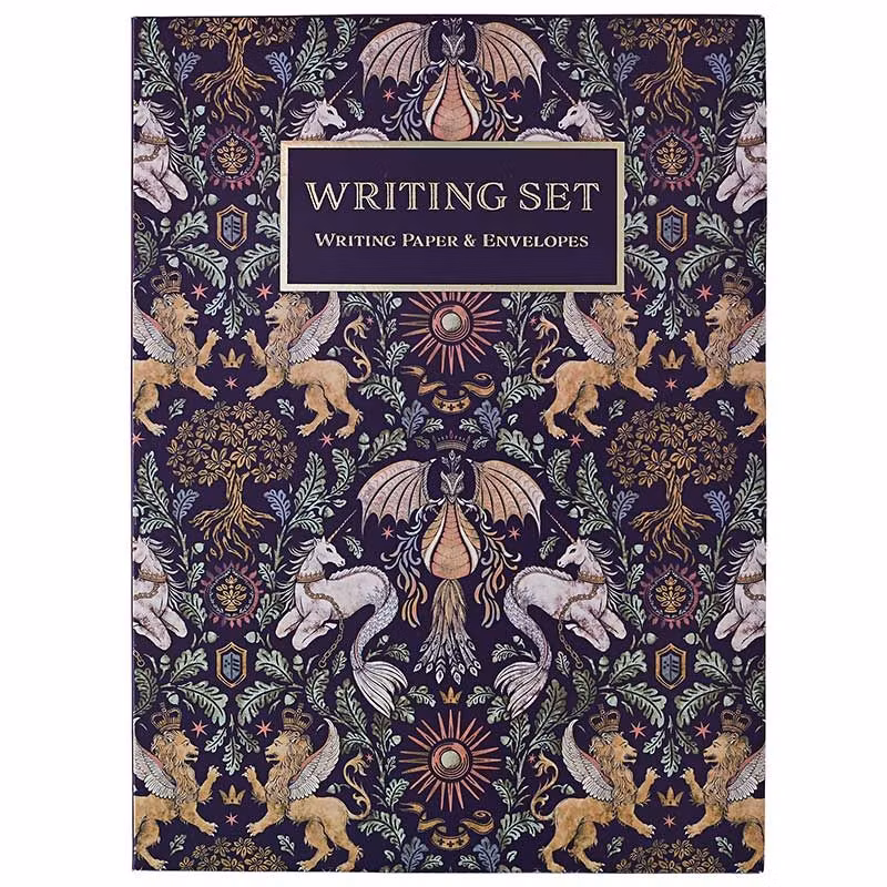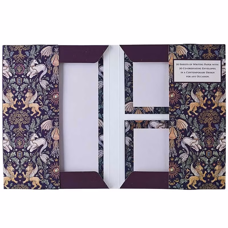 Brevpappren är smyckade med den vackra enhörningen och hans vänner djuren.