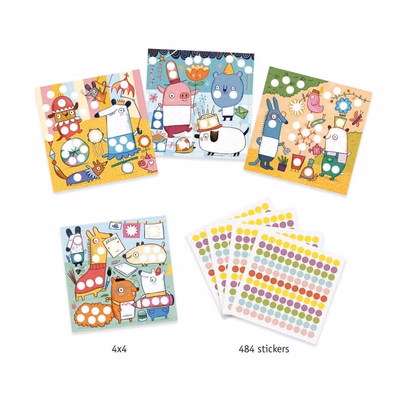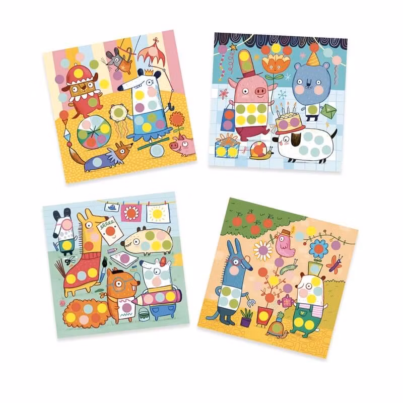 Härligt papperspyssel för mindre barnen. Fyll i de fina motiven med de färgglada prickarna som är självhäftande.