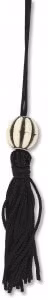 Bokmärket har ett vackert band, med en pärla, fäst vid sig.
