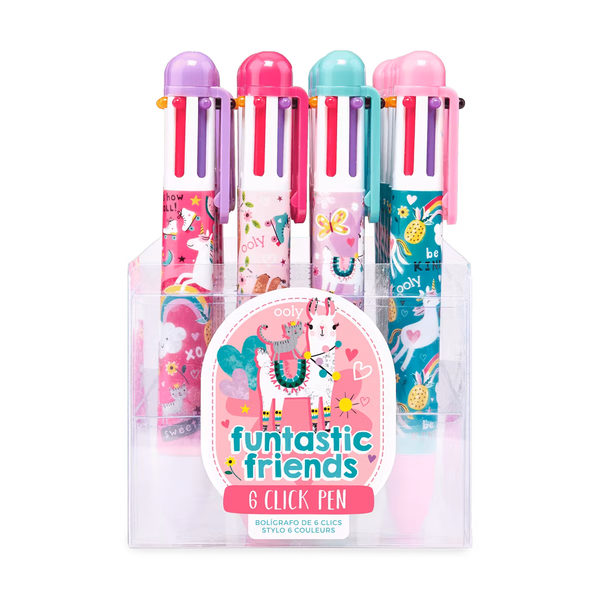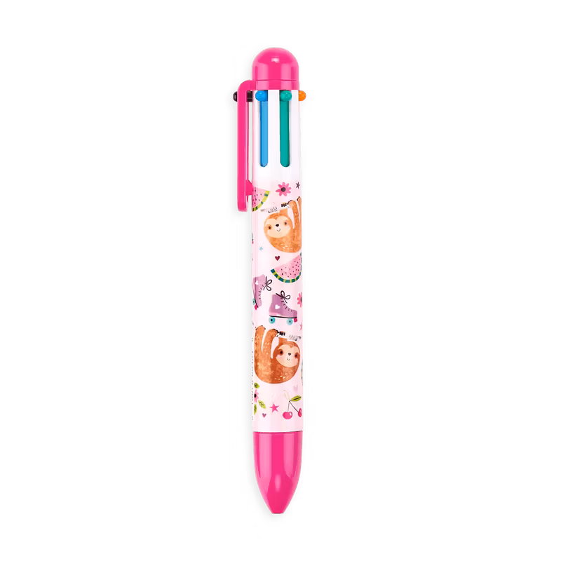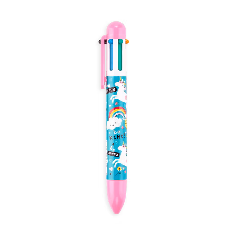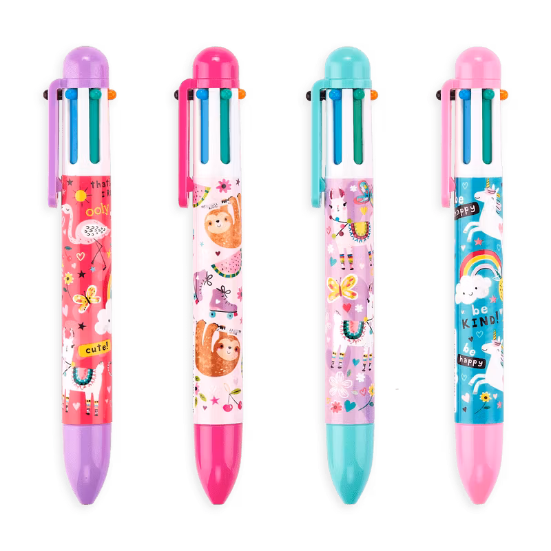 Fina pennor med tjockt skaft. Pennorna innehåller 6 olika färger att skriva med: röd, svart, lila, blå, grön och orange.