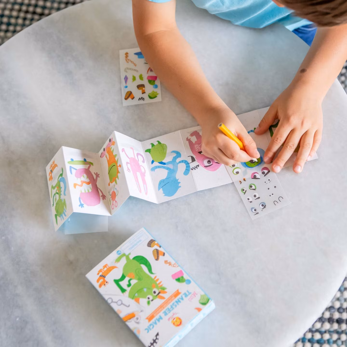 Din uppgift är att välja ut vad du tycker passar till varje monster och gnugga fast ögon och dekorationer med hjälp av den lilla gnuggpennan.