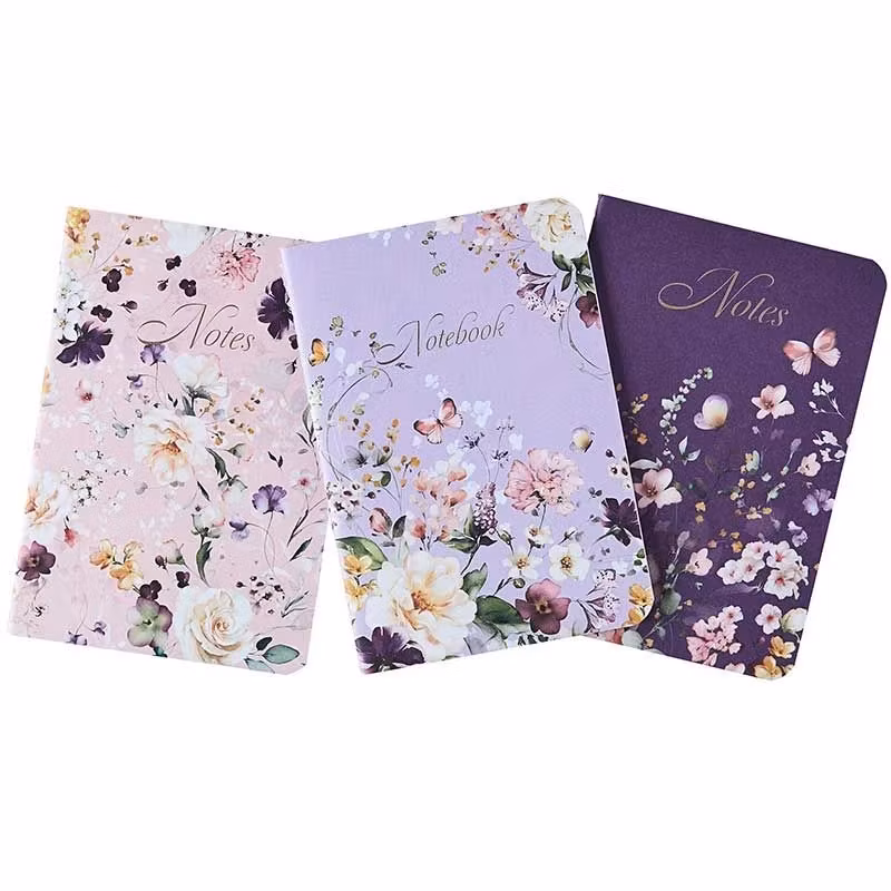 Tre fina anteckningsböcker med tre olika vackra omslag. Det vackra omslaget sträcker sig runt varje bok. Omslaget har gulddetaljer för en lyxigare känsla.