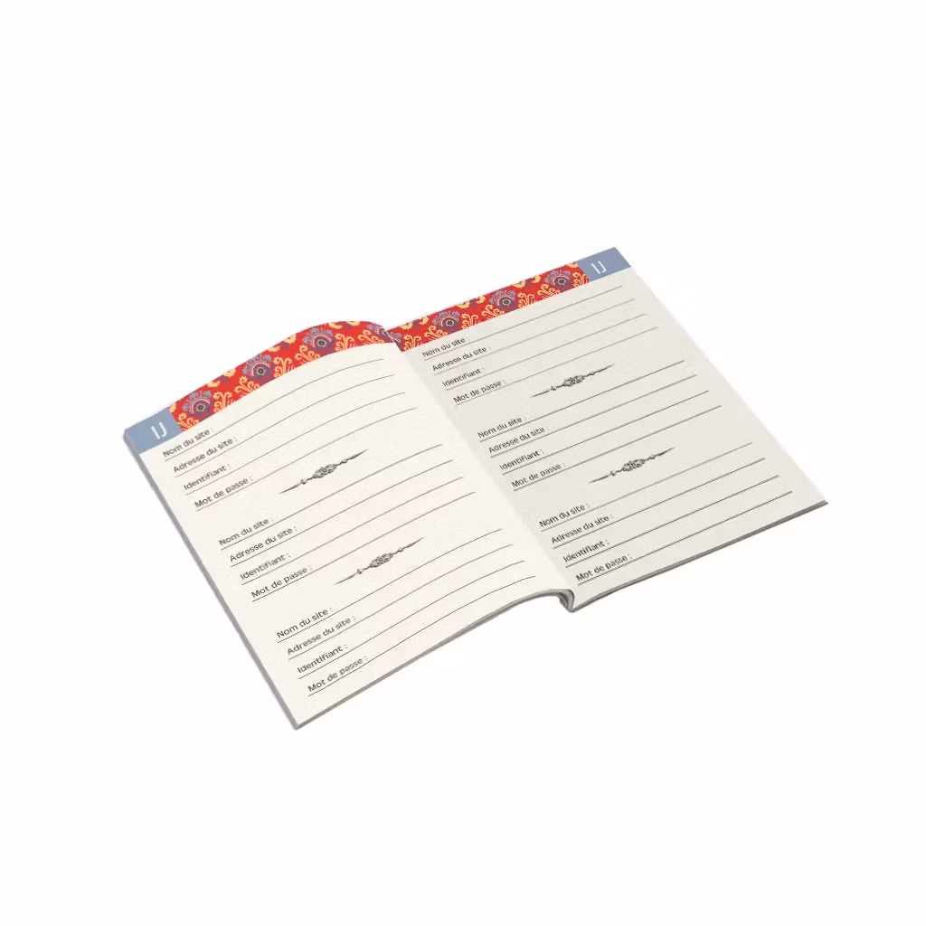 En underbart vacker bok där du kan samla ihop dina koder till olika sidor på nätet. Om du ställer den i din bokhylla är det väldigt svårt för någon annan att lista ut att det är där du förvarar koderna till allt som du har svårt att komma ihåg.