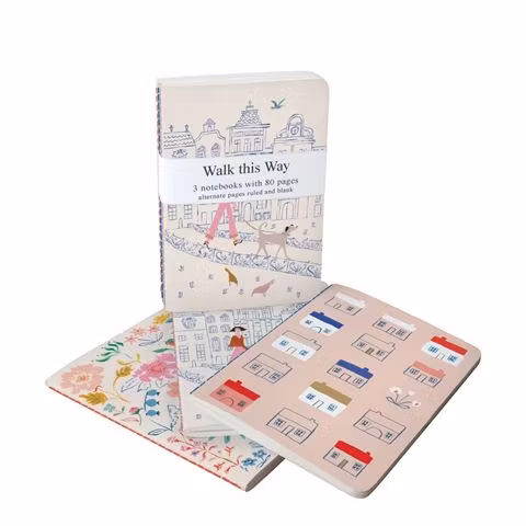 I det här paketet ingår tre vackra små anteckningsböcker med olika motiv på omslagen av varje anteckningsbok, bland annat en hund ute på promenad med sin matte.
