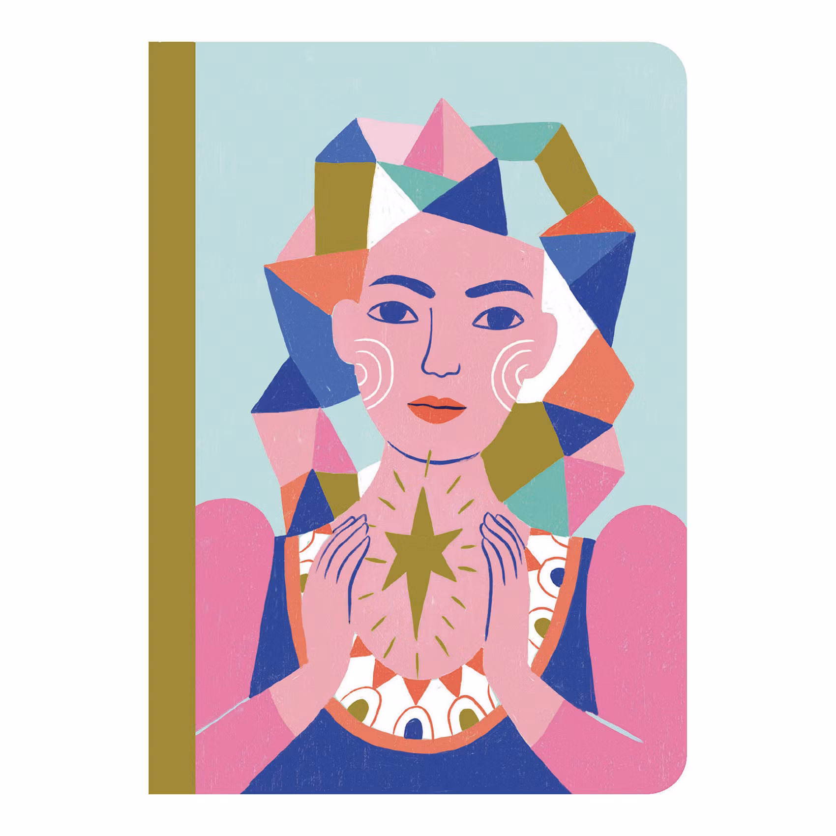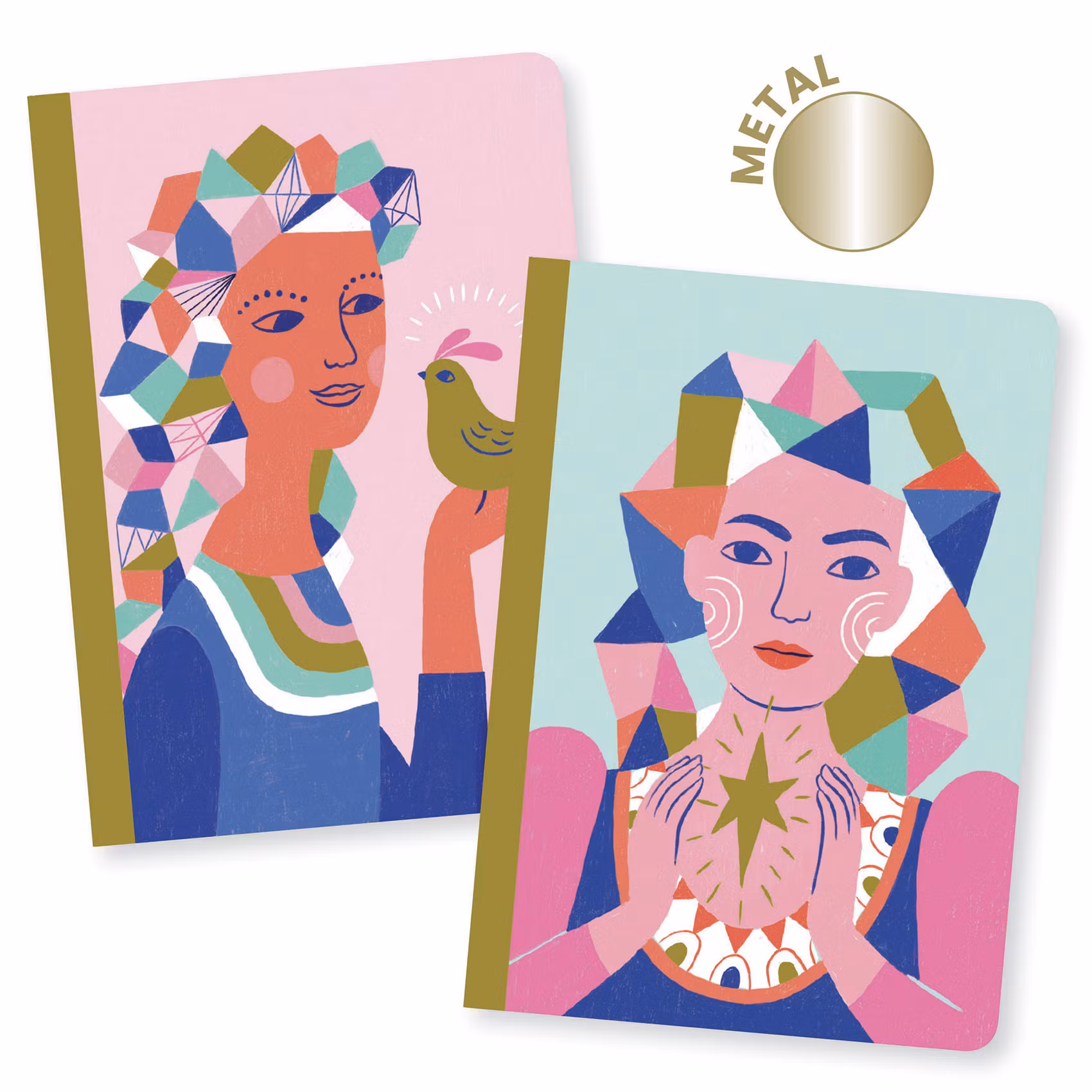 Ett sött set med två små anteckningsböcker med snygga grafiska illustrationer av kvinnor på omslagen och rosa samt ljust turkosa bakgrunder. Dessa vackra anteckningsböcker har guldskimrande detaljer på utsidan och innehåller 40 sidor, var med en liten bild på varje sida.