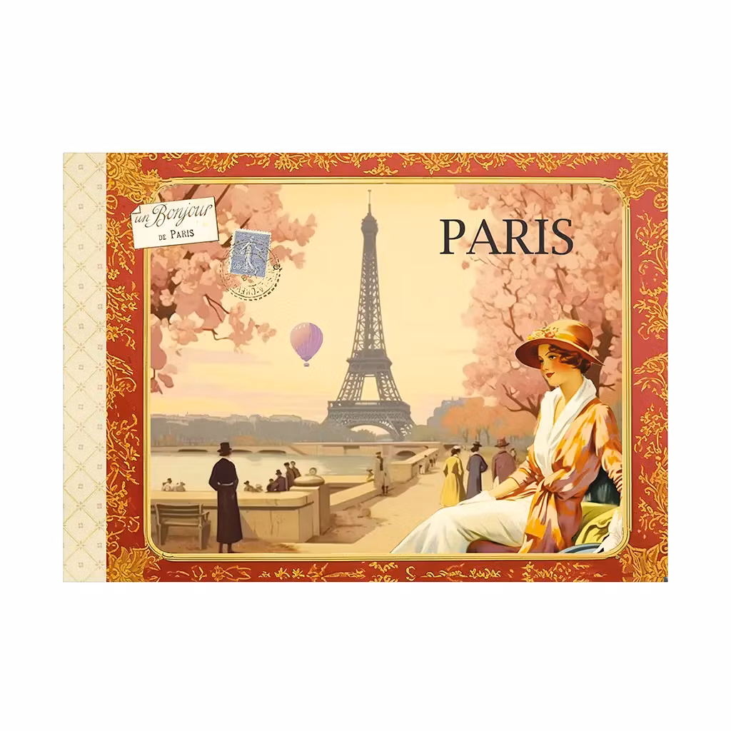 En underbart vacker anteckningsbok där varje uppslag är ett konstverk där du adderar din egen text. Den här franska anteckningsboken är något alldeles extra. Illustrationerna är retroinspirerade och färgerna milda.