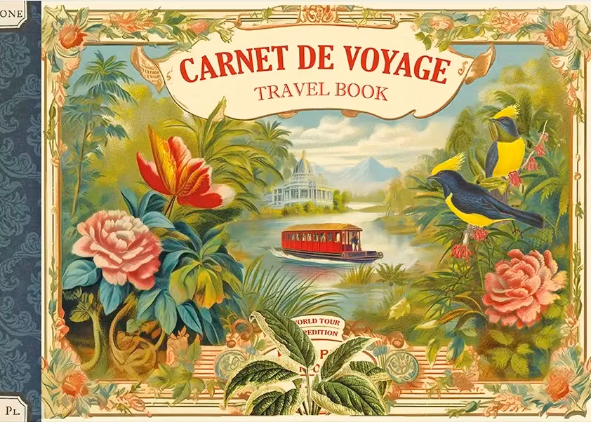 En underbart vacker anteckningsbok där varje uppslag är ett konstverk där du adderar din egen text. Den här franska anteckningsboken är något alldeles extra. Illustrationerna är retroinspirerade och färgerna milda.