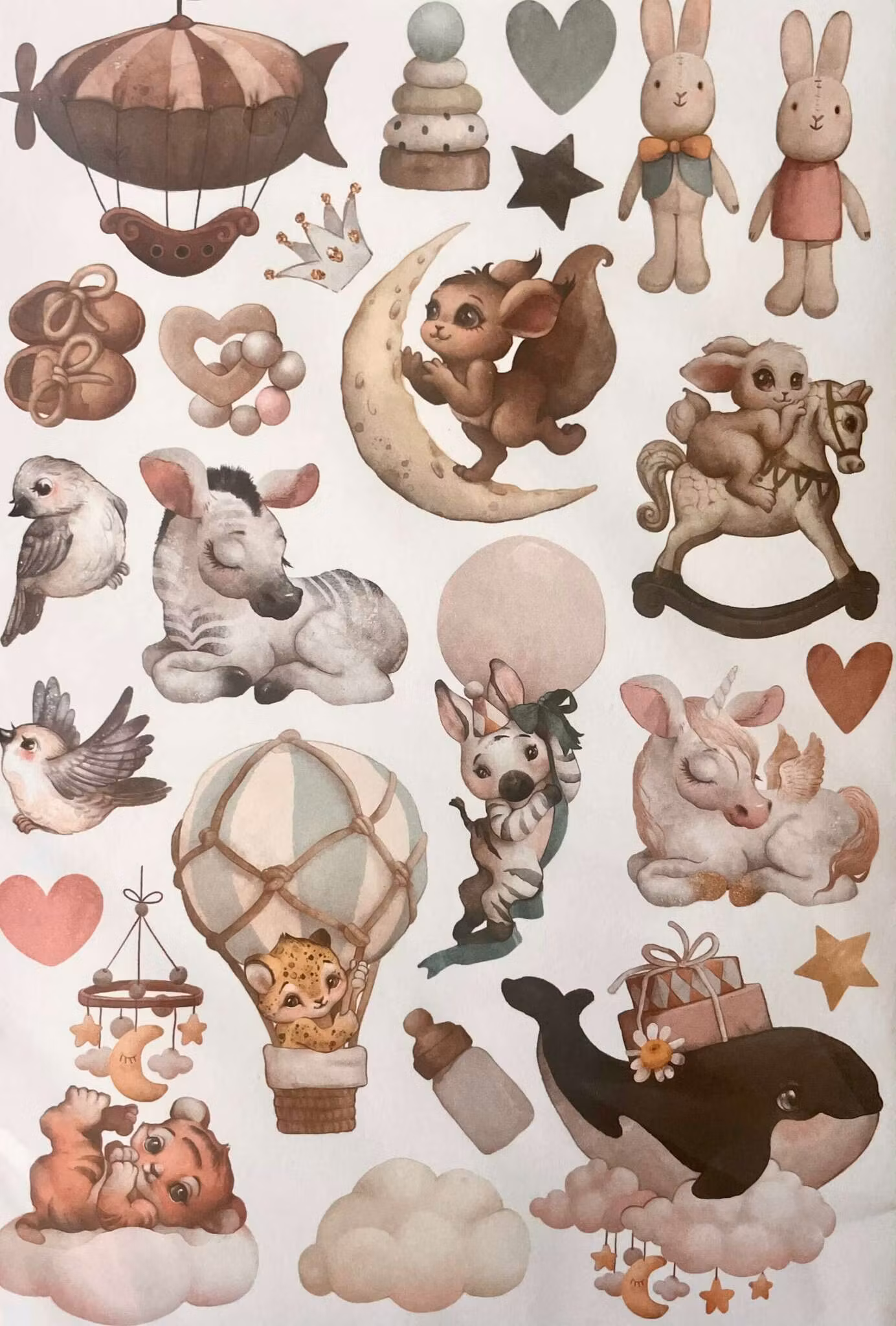 Här finns mycket fina utklippbara pappersdekorationer med söta djur, moln och andra drömmiga motiv.Perfekta motiv om du vill skapa ditt eget dopkort till något