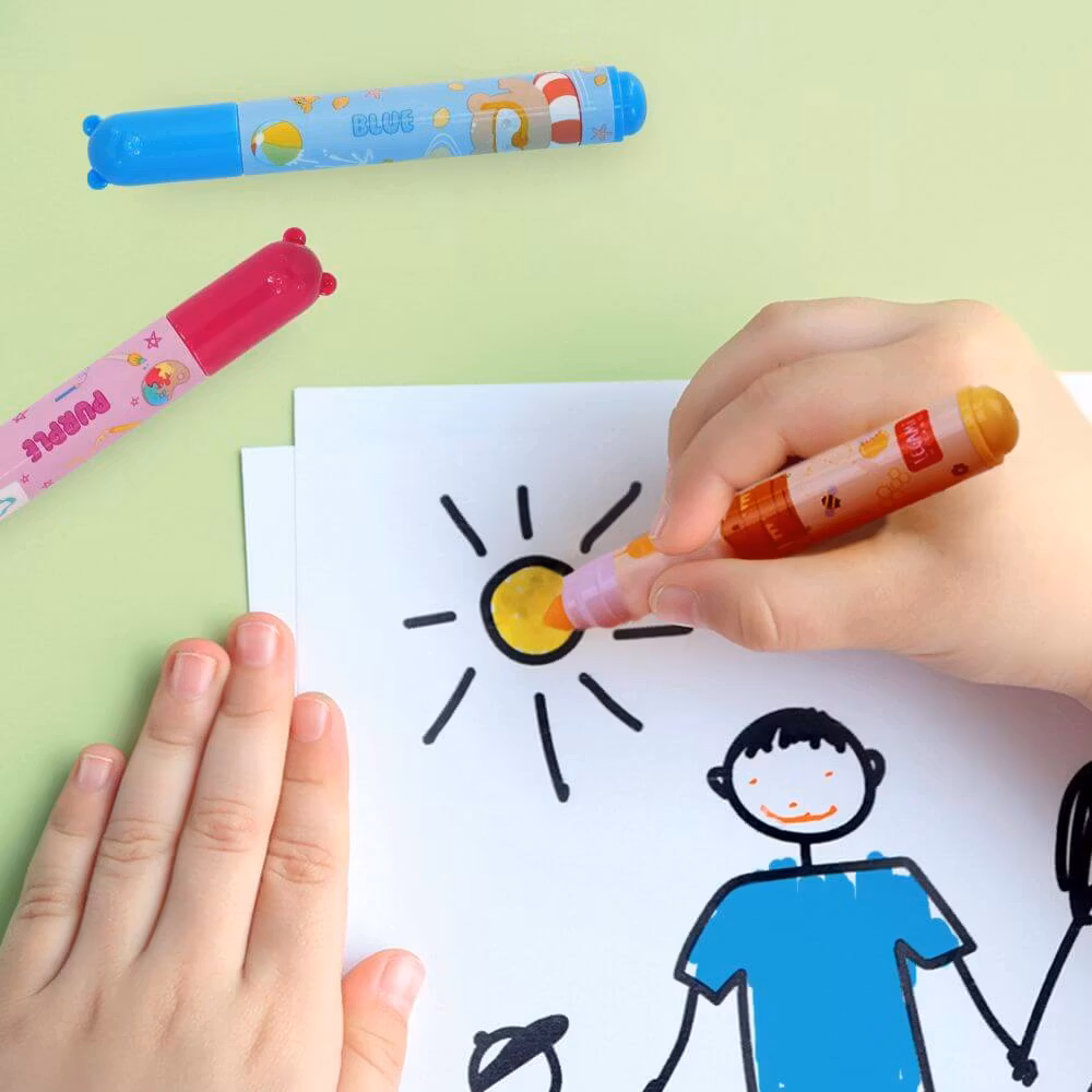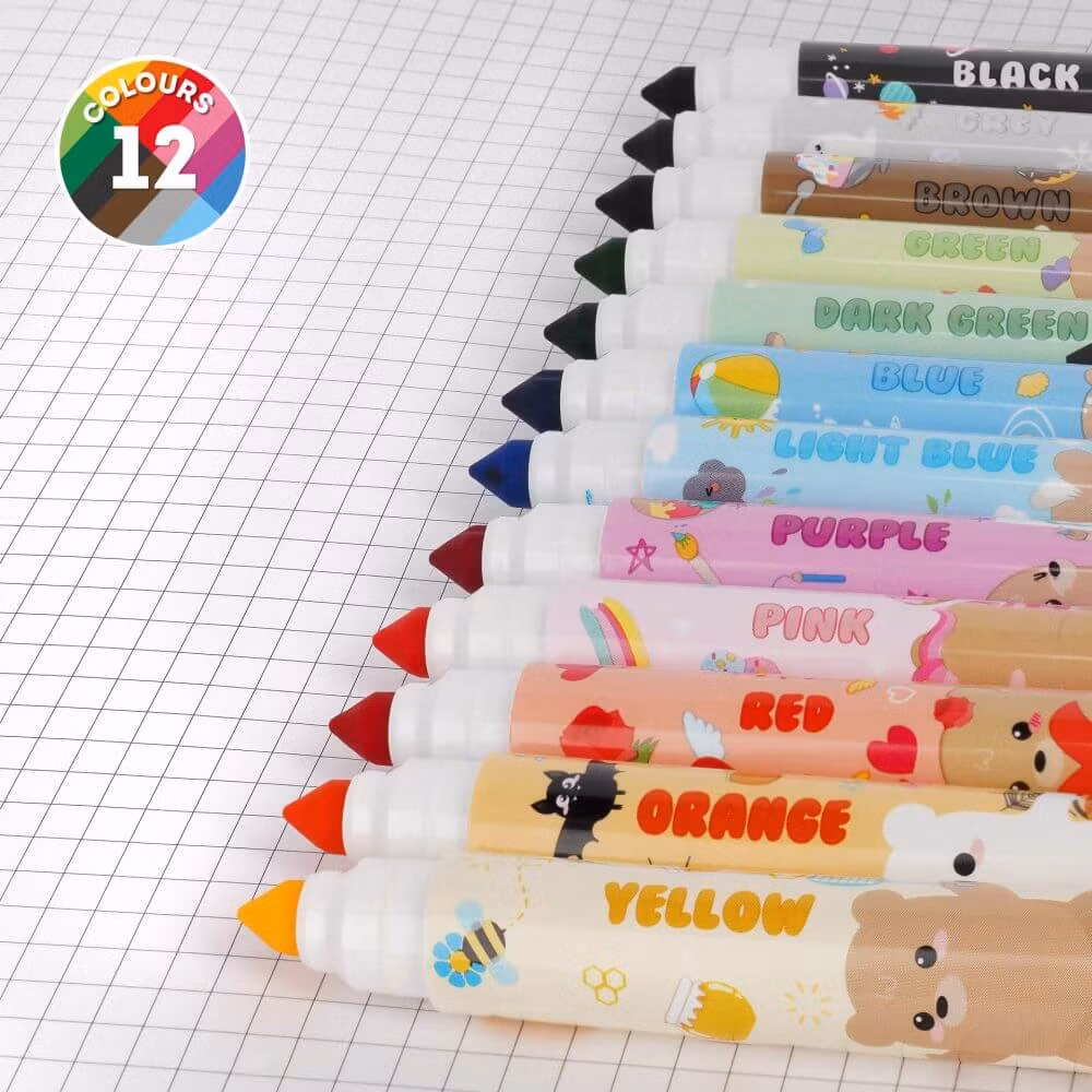 Här finns 12 greppvänliga, fina pennor med vattenbaserat färg utan gifter. Färgen går att tvätta bort lättare än andra än färgen från många andra pennor.